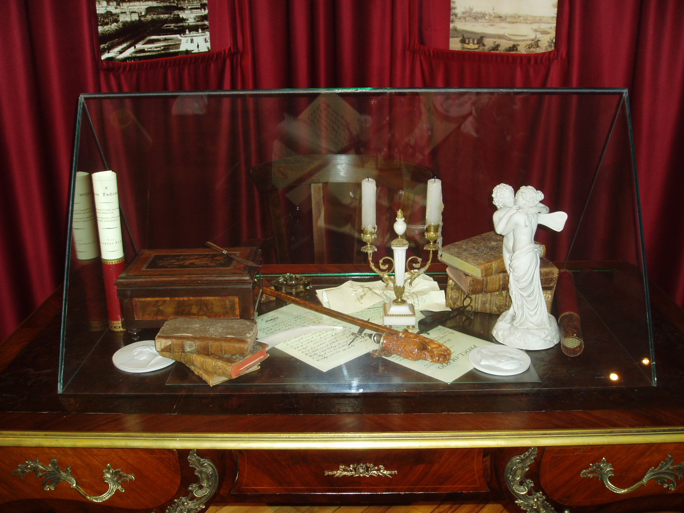 Nyilvános 929 | 1605 | Tapolca: Templom domb 8. Múzeum | A múzeum épülete, az ún. Kántorház - a város védett építészeti emléke - Tapolca történelmi városközpontjában, a Malom-tó fölötti Templom dombon található. Ide járt elemi iskolába az 1770-es évek elején város nagy szülötte, Batsányi János költő. Részlet a Batsányi Emlékkiállításról: dolgozószoba-sarok. Az itt kiállított tárgyak konkrétan nem kötődnek Batsányihoz, csak korabeliek, illetve életének és pályájának főbb jellemzőit jelenítik meg. A Napóleon-plakett bonapartista irányultságát szimbolizálja. Ámor és Psyché szobra pedig feleségével,a bécsi származású költőnővel, Baumberg Gabriellával megélt és leélt múlhatatlan szerelem kifejezőjeként emlékeztet kettőjük kapcsolatára. A felvétel 2007 februárjában készült. Felh. irod.: Látnivalók Veszprém megyében. Miskolc, Well-PRess, 2000 Hangodi László: Múltbanéző - kiállításvezető a Tapolcai Városi Múzeum tárlataihoz. Tapolca, 2006 |