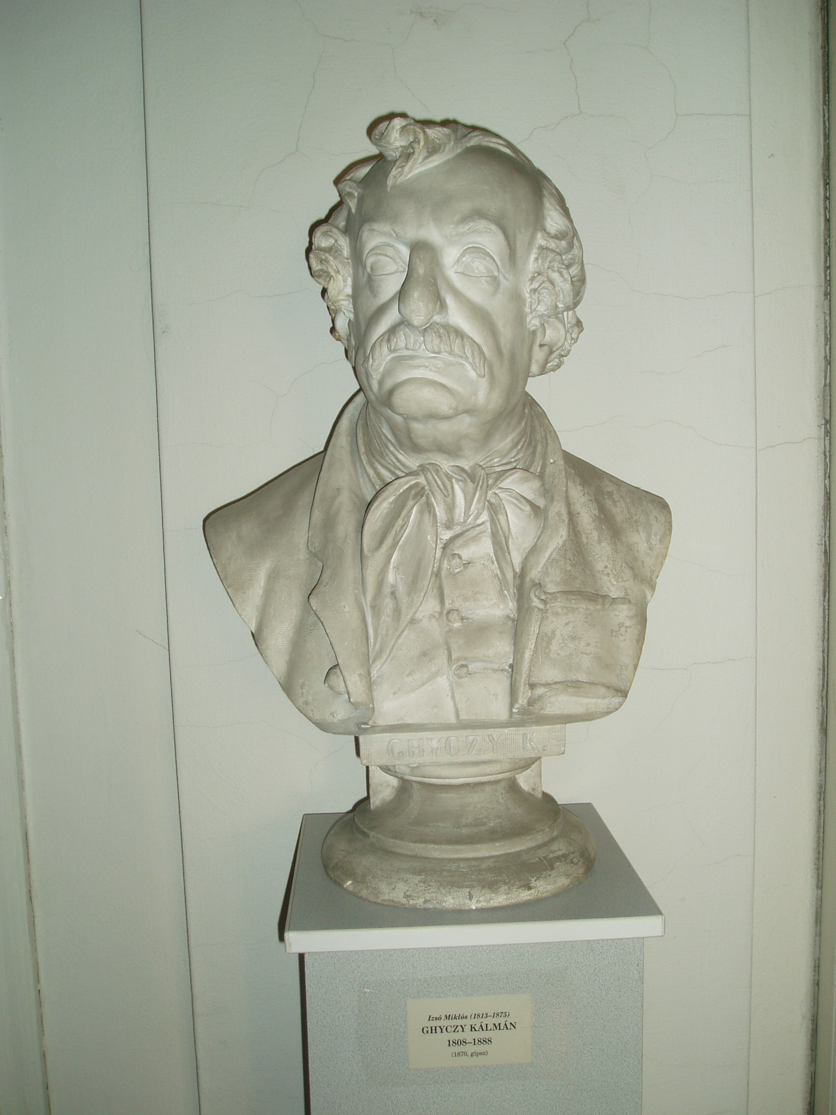 Nyilvános 892 | 1609 | Pápa, Március 15. tér 9. Pápai Református Kollégium Gimnáziuma | A híres pápai Református Kollégium első épülete 1531 és 1752 között a mai Ruszek közben, a Lábasház épületének helyén állott. 1752-ben - Mária Terézia rendeletének következtében, amely megszüntette a szabad vallásgyakorlást - harminckét évig csak a közeli Adásztevelen működhetett. 1784-ben, II. József türelmi rendeletének köszönhetően térhetett vissza az iskola Pápára, s hamarosan felépült a ma Ókollégiumként ismert épület (lásd: Pápa, Petőfi u. 13.), amelyben 1794-ben indulhatott meg az oktatás. Az intézmény 1857-ig működött ott, ekkor átköltözött a Március 15. tér 13-15. számú házba, az ún. Nátus-ba, majd 1895-ben utolsó végleles helyére, ide, a Március 15. tér 9. számú monumentális új épületbe. A képen - a könyvtár előterében - Ghyczy Kálmán (1808-1888) jogtudós, pénzügyminiszter fehér márvány mellszobra látható, Izsó Miklós 1870-ben készült alkotása. A fénykép 2007 áprilisában készült. Felh. irod.: Németh Adél - Szabó Lajos: Pápa. Bp. Panoráma, 1989 http://refi-papa.hu |