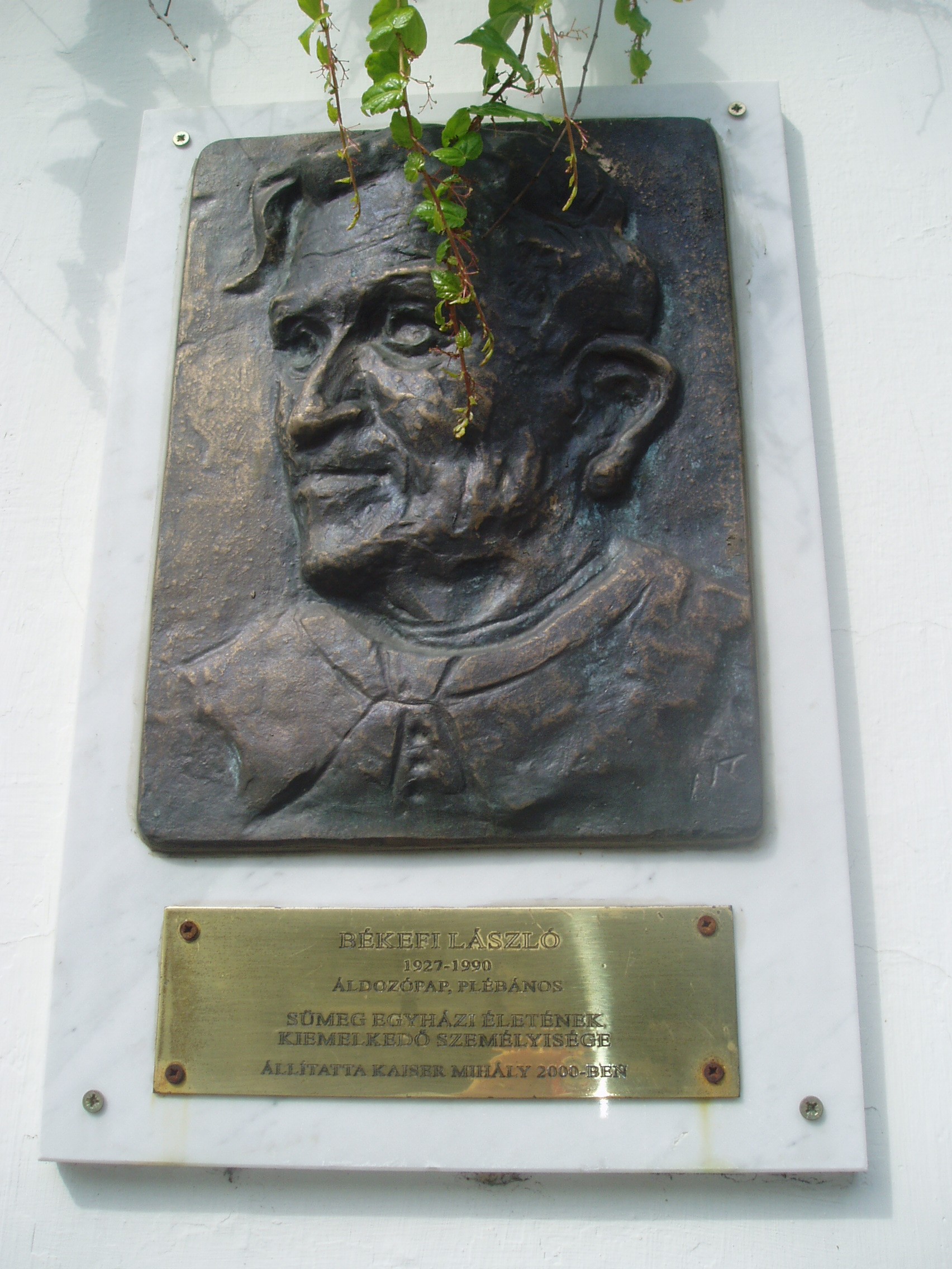 Nyilvános 912 | 1787 | Sümeg, Panteonfal. Békefi László emléktáblája | A Kisfaludy téren, Kisfaludy Sándor szülőháza előtt alakították ki Sümeg Panteonfalát. A képen Békefi László emléktáblája látható. Békefi László (Celldömölk, 1927. júl. 30. – Sümeg, 1990. márc. 13.) prépost. 1952-ben, Veszprémben szentelték pappá. Két évig Buzsákon, egy esztendeig Búcsúszentlászlón, 1955–1957 között Sümegen káplán. Veszprémben püspöki helytartó, püspöki titkár, majd templomigazgató. 1961-től Sümegen plébános, 1963 után a kerület vezető esperese, 1973-tól prépost. A város mindkét templomát felújíttatta, a plébániatemplom központi fűtést kapott. A Máltai Lovagrend segítségével munkálkodott a várbeli kápolna felújításán. Tagja volt a városi Hazafias Népfrontbizottságnak, a Városvédő- és Szépítő Egyesületnek. 1994-ben – posztumusz – Sümeg város díszpolgára címet kapta. A fénykép 2007 júniusában készült. Felh. irod.: Koppány Tibor - Kozák Károly: Sümeg útikalauz. Veszprém, Idegenforgalmi Hivatal, 1965 Látnivalók Veszprém megyében. Miskolc, Well-PRess, 2004 Veszprém megyei életrajzi lexikon. Veszprém, Veszprém Megyei Önkormányzat Közgyűlése, 1998 |