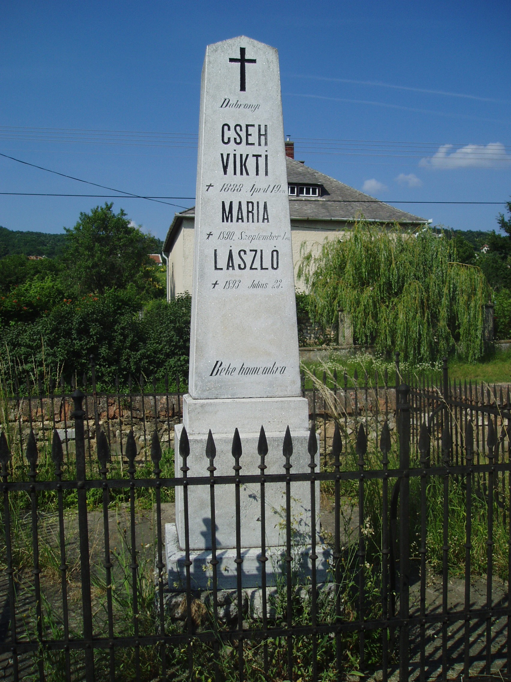 Nyilvános 875 | 1537 | Sümeg, Temető. Cseh László sírja | Sümeg délkeleti határában, a Tapolcára vezető út mellett emelkedő lankás domboldalon találjuk a város köztemetőjét. Helyét még Bíró Márton püspök jelölte ki; jelentősebb számban a XIX. század eleje óta kezdtek ide temetkezni. A temetődomb tetején áll az 1816-ban épített, későbarokk stílusú temetőkápolna. Körülötte a sümegi élet utolsó két évszázada szinte valamennyi híres személyiségének sírja fellelhető. Itt nyugszik Cseh László (1818-1893), Sümeg köztiszteletben álló, utolsó táblabírája, Kisfaludy Sándor barátja. A fénykép 2007 júniusában készült. Felh. irod.: Koppány Tibor - Kozák Károly: Sümeg útikalauz. Veszprém, Idegenforgalmi Hivatal, 1965 Sümegi kalauz. Sümeg, Sümegi Fórum Alapítvány, 1993 Miklósi-Sikes Csaba: Kőbe vésett történelem. A sümegi városi temetők története és sírjelei 1950-ig. Sümeg, Sümegi Fórum Alapítvány, 2002 Veszprém megyei életrajzi lexikon. Veszprém, Veszprém Megyei Önkormányzat Közgyűlése, 1998 |