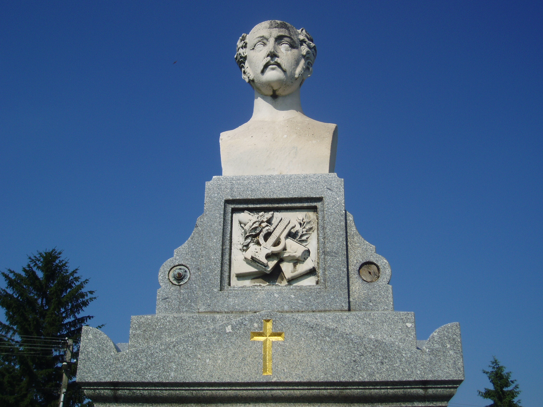 Nyilvános 955 | 2829 | Sümeg, Temető. Kisfaludy Sándor és Szegedi Róza sírja | Sümeg délkeleti határában, a Tapolcára vezető út mellett emelkedő lankás domboldalon találjuk a város köztemetőjét. Helyét még Bíró Márton püspök jelölte ki; jelentősebb számban a XIX. század eleje óta kezdtek ide temetkezni. A temetődomb tetején áll az 1816-ban épített, későbarokk stílusú temetőkápolna. Körülötte a sümegi élet utolsó két évszázada szinte valamennyi híres személyiségének sírja fellelhető. A temető leglátogatottabb síremléke Kisfaludy Sándor (1772-1844) és felesége, Szegedy Róza (1775-1832) sírja. A korábban elhunyt Szegedy Róza földi maradványait az 1900-as évek elején helyezték át férje sírjába. Akkor már a költő sem eredeti helyén nyugodott, erre a díszsírhelyre 1869-ben hozták át koporsóját. A timpanonos lezárású szürke gránit sírkövet megkoronázó Kisfaludy Sándor-mellszobor Gerenday Antal 1869-ben készített alkotása. A sír háromlépcsős talapzatának középső fokára helyezték Szegedy Róza lépcsőre hulló rózsákkal díszített portrédomborművét, amelyet Istók János készített 1904-ben. A fénykép 2007 júniusában készült. Felh. irod.: Koppány Tibor - Kozák Károly: Sümeg útikalauz. Veszprém, Idegenforgalmi Hivatal, 1965 Sümegi kalauz. Sümeg, Sümegi Fórum Alapítvány, 1993 Miklósi-Sikes Csaba: Kőbe vésett történelem. A sümegi városi temetők története és sírjelei 1950-ig. Sümeg, Sümegi Fórum Alapítvány, 2002 Veszprém megyei életrajzi lexikon. Veszprém, Veszprém Megyei Önkormányzat Közgyűlése, 1998 |