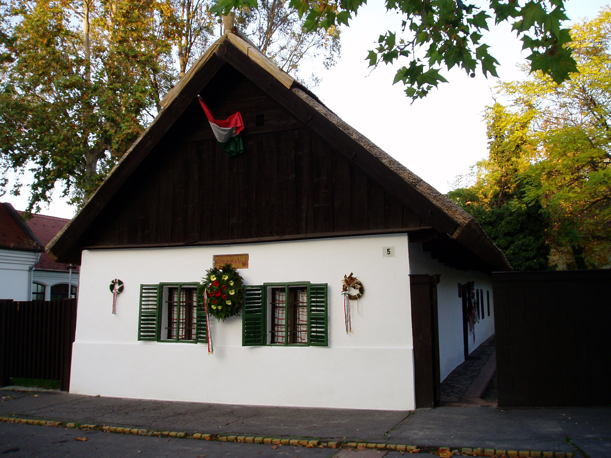 Nyilvános 990 | 1713 | Kiskőrös, Petőfi tér 5. Petőfi Sándor szülőháza | A népi stílusú lakóház 1790 körül épült. A nádfedeles, deszkaoromzatú, már nem új házat Petrovics István hentes és mészáros 1821-ben vette bérbe, s felesége, Hrúz Mária itt szülte első gyermeküket, Sándort. Az 1790 körül épült zsellérházban kapott helyet a Petőfi Emlékmúzeum. A ház homlokzati márványtábláján ez olvasható: "Itt született Petőfi 1822. december 31-én". A bejárati ajtó szemöldökfája felett a költő sorait olvashatjuk: "Szent a küszöb, melyen beléptem én, / Oh szent a szalma kunyhók küszöbe. / Mert itt születnek a nagyok, az ég / A megváltókat ide küldi be." A ház konyhájában korabeli használati tárgyak láthatók. Az utcai szoba a Petrovics család bútoraival és egykori használati tárgyaival emlékeztet arra, hogy ott született a nemzet nagy költője. A képen látható ágyat az elszegényedett Petrovics család annakidején Dömösön eladta más bútorokkal együtt, s 1890-ben a Magyar Írók és Művészek Társasága kutatta fel és vásárolta meg. A fénykép 2004 októberében készült. Felh. irod.: Látnivalók Bács-Kiskun megyében. /Vendégváró/. Well-Press Kiadó, 2002. Petőfi emlékhelyek a Kárpát-medencében. Kiskőrös, Petőfi Sándor Társaság, 1996 |