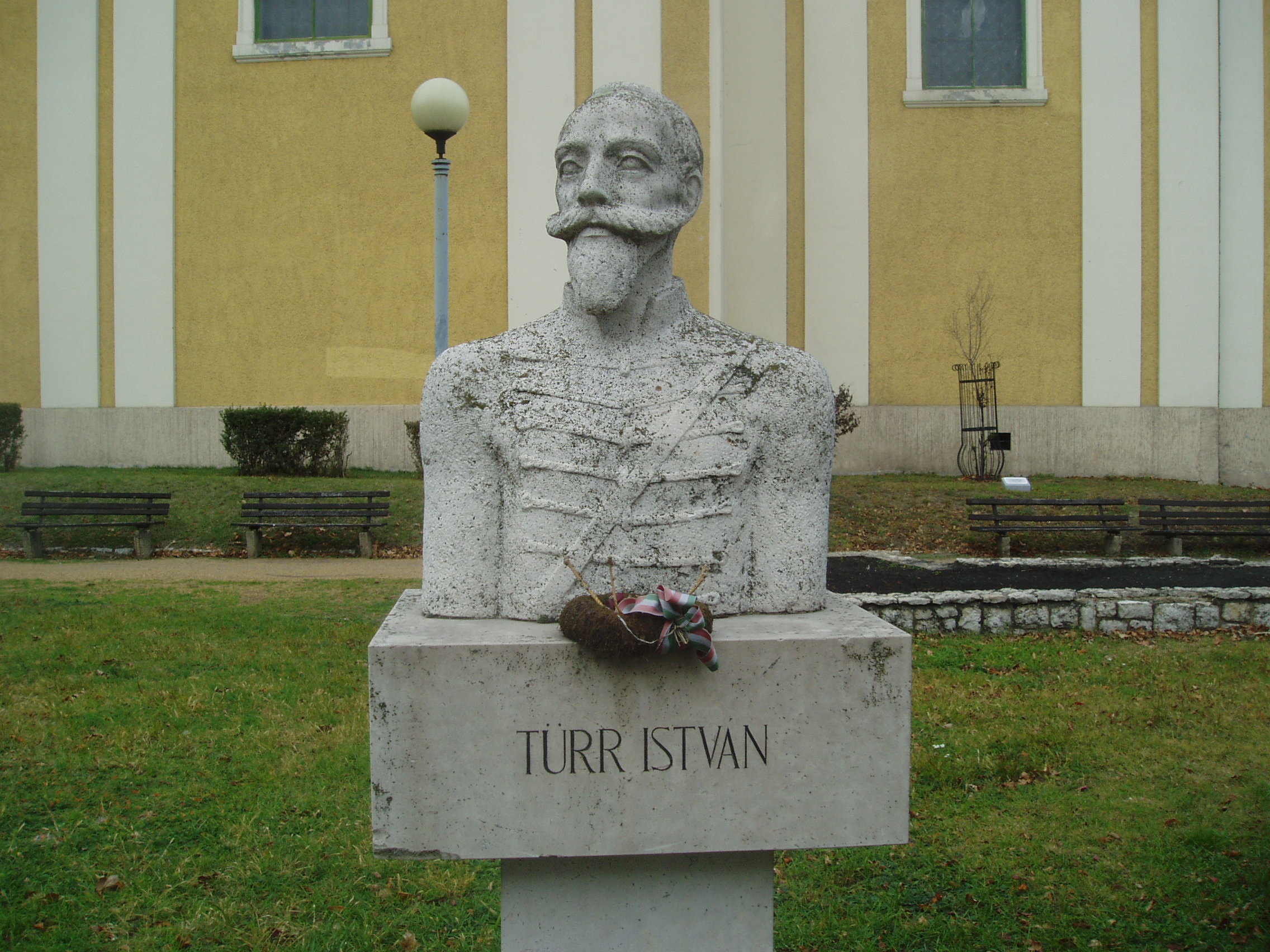 Nyilvános 1207 | 2803 | Baja, Bartók Béla utca 1-3. Páduai Szent Antal ferences kolostortemplom és rendház | Baja központjában áll az egykori ferences rendház, s hozzá tapadva a kolostortemplom, más néven Barátok temploma. A templom déli oldalán levő parkban híres bajai személyiségek mellszobrait állították fel. Köztük áll Türr István mellszobra. Türr István Baján született 1825. augusztus 10-én. Az egységes Itália megteremtéséért Garibaldi oldalán harcolt. A magyar szabadságharcban nem vett részt, de a kiegyezés után jelentős szerepet játszott Bácska mezőgazdasági életének fellendítésében. A Panama-csatorna és a Korinthoszi-csatorna kezdeményezőjének nevéhez fűződik a Sugovicát a Ferenc-csatornával összekötő átvágás elkészítése. Türr Istvánnak Baján több emlékhelye is van. Emléktábla jelöli szülőházának helyét (lásd: Baja, Bartók u. 10.) s 1938-ban a Duna és a Sugovica összefolyásánál felállították monumentális emlékművét. Róla nevezték el Baja múzeumát (lásd: Baja, Deák Ferenc u. 1.). A fénykép 2007 októberében készült. Felh. irod.: Látnivalók Bács-Kiskun megyében. Miskolc, Well-PRess, 2002 www.wikipedia.org |