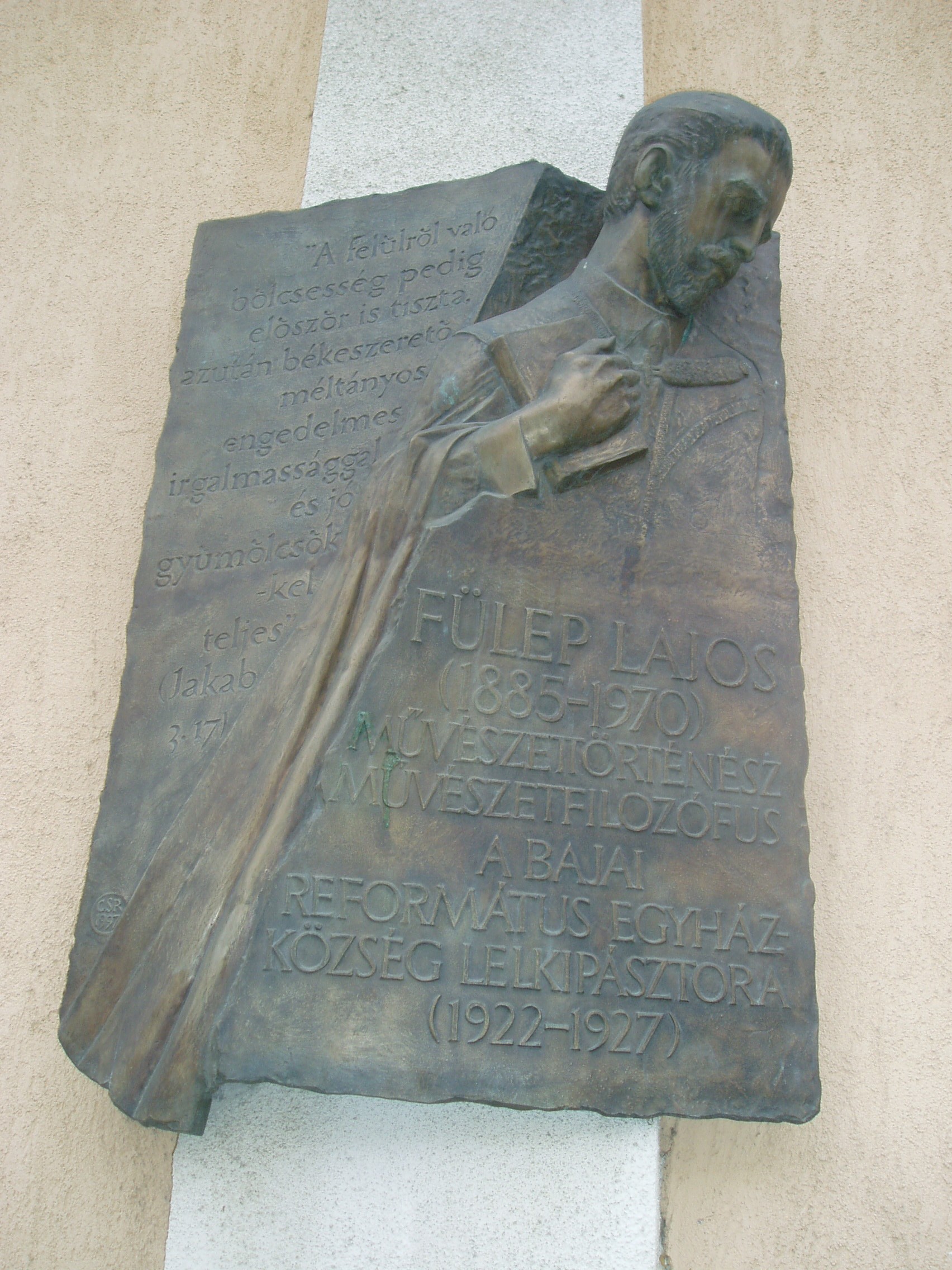 Nyilvános 1244 | 2838 | Baja, Deák Ferenc utca 17. Református templom | A bajai egyház alapjait a felvidékről érkező református családok tették le a XVIII. században. Mai, eklektikus stílusú templomuk 1892-ben készült el Szeberény János tervei szerint. Mint a homlokzatán elhelyezett portrédomborműves emléktáblán olvasható, itt volt lelkipásztor 1922 és 1927 között Fülep Lajos (1885-1970) művészettörténész, művészetfilozófus. A fénykép 2007 októberében készült. Felh. irod.: http://bacs-kiskun.hu |