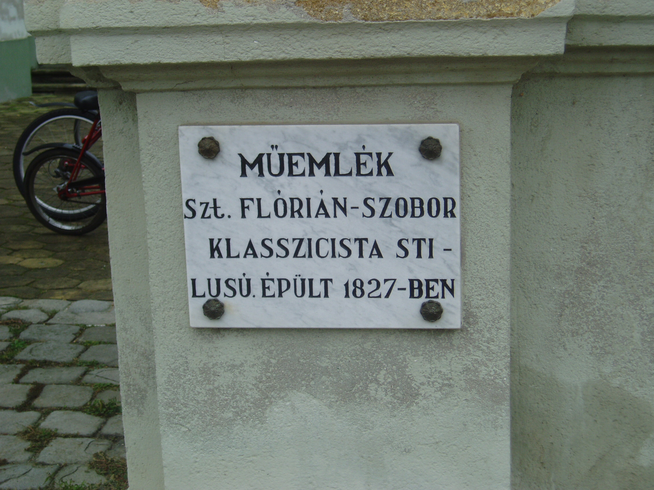 Nyilvános 877 | 1574 | Baja, Szent Imre tér 5. Szent Flórián-szobor | A plébániatemplom melletti szoborfülkében áll 1827 óta Domenico Berti kőfaragó Szent Flóriánt ábrázoló, klasszicista stílusú szobra. A tűzoltók védőszentjének szobrát egy tekintélyes bajai polgár, Arnó György állíttatta azzal a fohásszal, hogy Szent Flórián védelmezze meg a várost a tűztől. Az első jelentős tűzvész, amiről források szólnak, 1742-ben pusztított Baján. Az ezt követő másfél évszázadban több mint ezerszer lobbant fel tűz a városban. Nagy tűz volt 1806-ban és 1819-ben, 1840-ben pedig az egész város leégett. A fénykép 2007 októberében készült. Felh. irod.: www.vendegvaro.hu Gál Zoltán: A bajai tűzoltóság hőskora. = www.bacskaisport.hu |