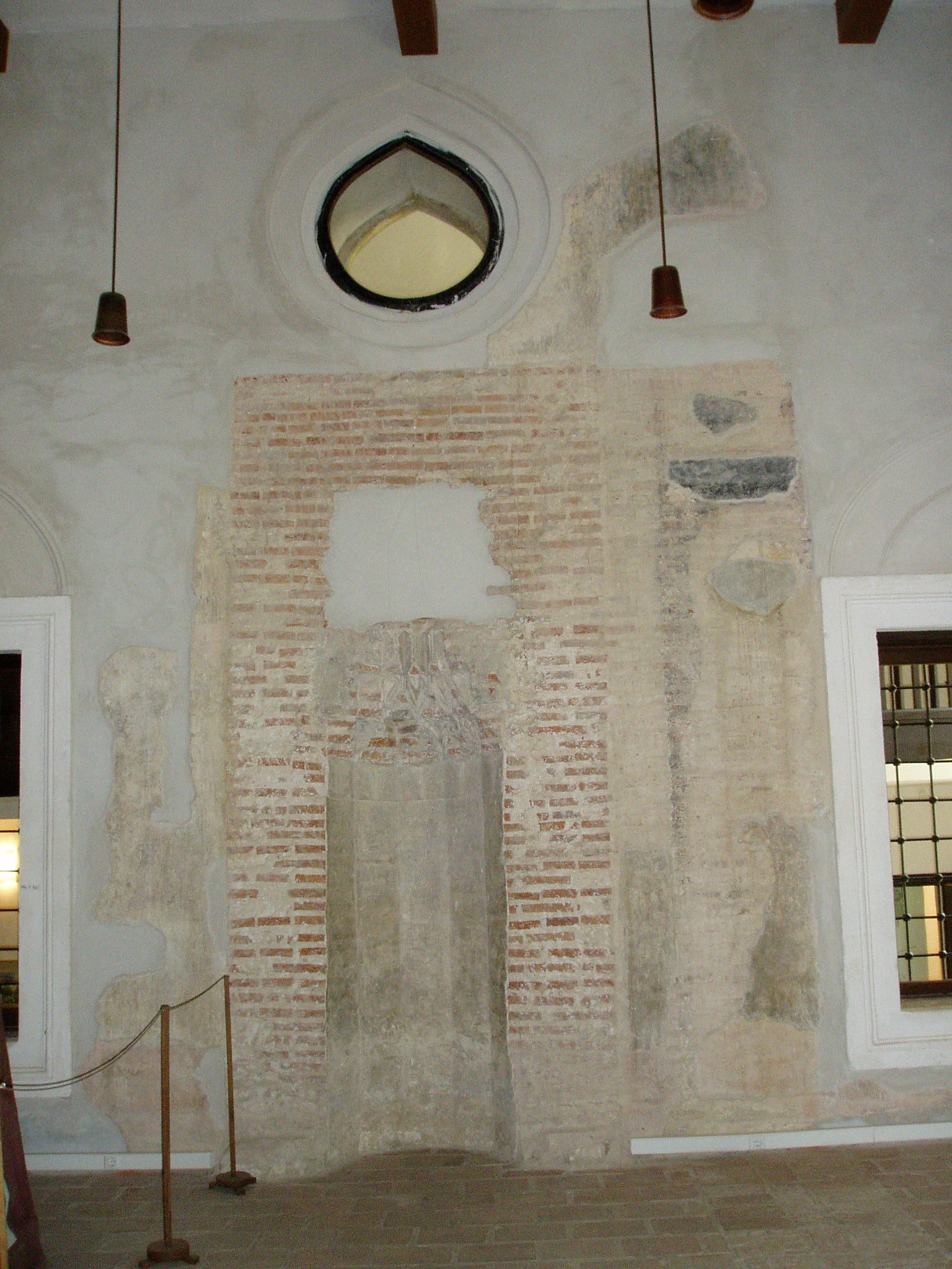 Nyilvános 1012 | 1804 | Szigetvár, Vár: dzsámi | A vár egyik központi épülete a Szulejmán dzsámi, amely a győztes szultán tiszteletére épült a XVI. században. A téglalap alaprajzú dzsámi Mekka felé néző oldalán látható a kőkeretes, egykor csempével borított, szalaktit boltozatú imafülke (mihrab). A dzsámit L alakú folyosó veszi körül, ennek délkeleti oldalán egy másik mihrab fülke található. Északnyugaton csatlakozik a dzsámihoz a szabályos tizennégyszög alakú minaret, amelynek nagy része a XVIII. században leomlott. A fénykép 2005 júniusában készült. Felh. irod.: Török műemlékek Magyarországon. = www.terebess.hu/keletkultinfo/minaret/szigetvar.html |