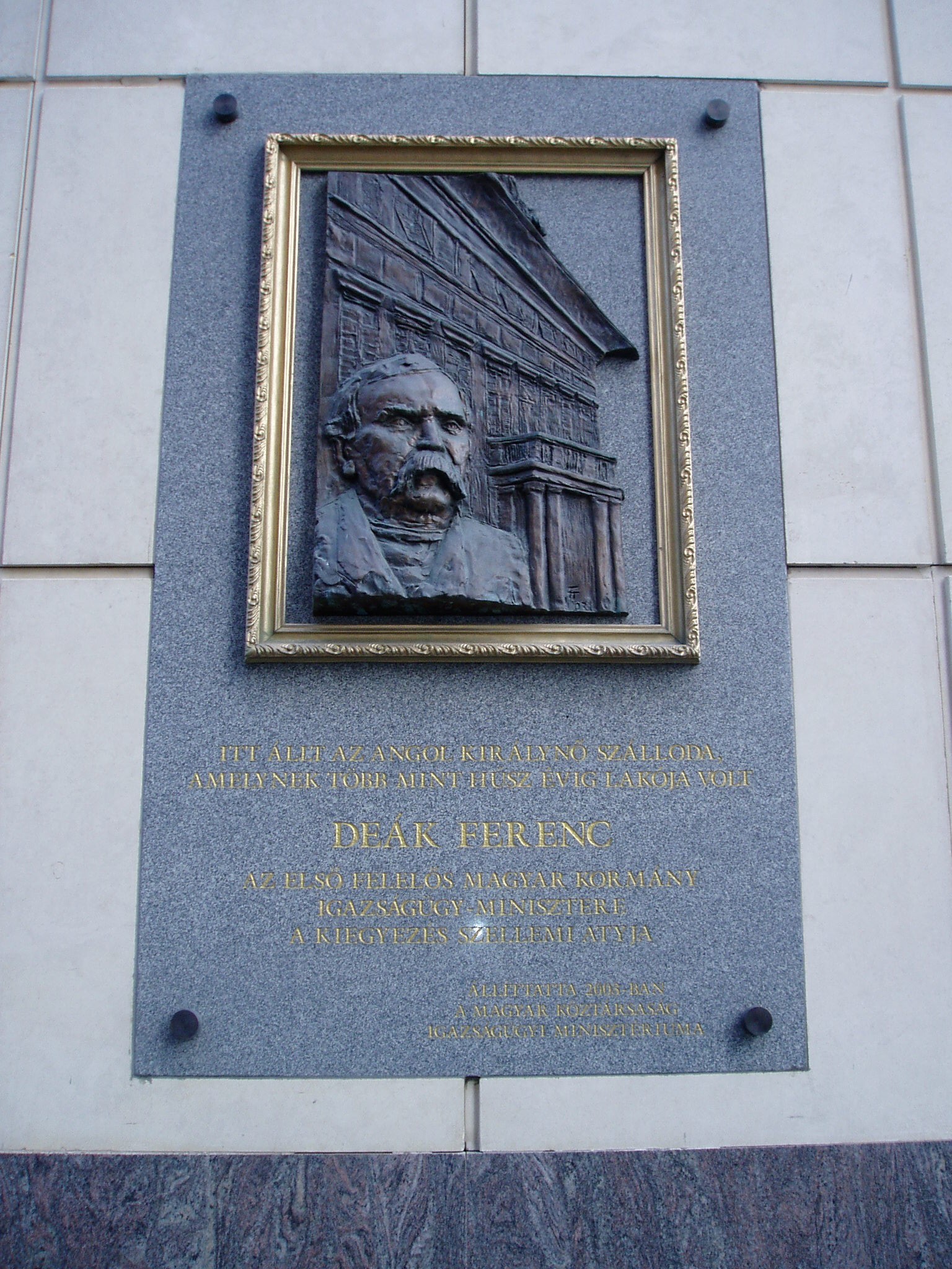 Nyilvános 936 | 1529 | Budapest V. Deák Ferenc utca 1. | A mai Deák Ferenc utca 1. - Türr István utca 8. - Apáczai Csere János utca 9. számú épületek által határolt területen állt Kemnitzer János szerencsejátékból meggazdagodott tímármester 1792-ben épült kétemeletes monumentális lakóháza. Ennek földszintjén működött a Kemnitzer-, vagy másik nevén Márványos-kávéház, amelynek - a korabeli leírások szerint - nem akadt párja Európában. Az 1838-as nagy pesti árvíz azonban teljesen elöntötte és tönkretette az épületet, de erős alapfalainak felhasználásával újjáépítették, és új tulajdonosa szállodává alakíttatta. 1839-ben már meg is nyílt, s az akkoriban megkoronázott Viktóriáról nevezték el Angol Királynő szállodának. Az új szálloda is európai hírességgé vált vörösmárvány lépcsőivel, fehér, aranyozott oszlopaival és mahagónifával borított falaival. 1849-ben azonban ismét nagy csapás érte: Pest bombázásakor a környékbeli épületekkel együtt súlyosan megrongálódott. 1850-ben Hild József építette újjá, s ismét régi fényében működött. "Fejedelmek lakóhelyének" nevezték, mert lakott benne királynő, császár, sah, cár, trónörökös. A magyar történelembe azonban azzal írta be a nevét, hogy tizenöt éven át, majdnem haláláig itt élt Deák Ferenc, s itt tárgyalt a kiegyezés előkészítése idején a bécsi udvar megbízottaival. Az Angol Királynő az 1900-as évek elejétől kezdte elveszíteni népszerűségét, amikor elvette Dunára nyíló panorámáját és felülmúlta kényelmét az eléje épített luxushotelek sora. 1916-ban megszűnt, épületét, amelyben ezután a Pénzintézeti Központ működött, az 1940-es években lebontották. A fénykép 2005 májusában készült. Felh. irod.: Konrádyné Gálos Magda: Pest-budai szállók emlékeiből 2. = Budapest 1974. 9. Gundel Imre -Harmath Judit: A vendéglátás emlékei. Bp. Közgazdasági és Jogi Kiadó, 1979 |