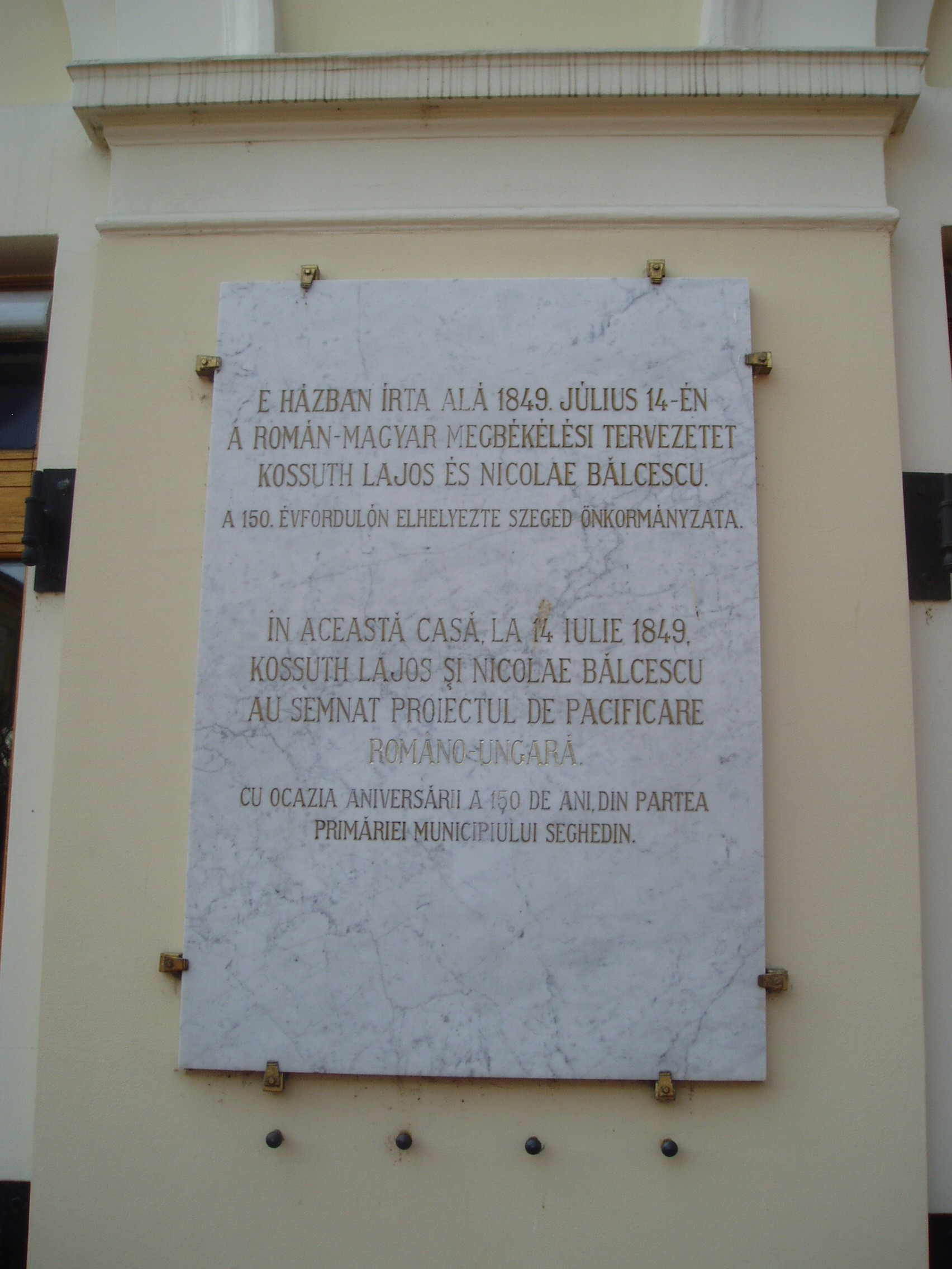Nyilvános 821 | 1305 | Szeged, Klauzál tér 5. Kárász-ház | A tér legszebb és legjelentősebb műemlék épülete a Kárász-ház (1845). A szegedi klasszicizmus legérettebb, egyszerű, de monumentális alkotása. Kiemelkedő szerepe van a tér kiegyensúlyozott hatásában. 1849-ben ebben a házban szállt meg Kossuth Lajos és ennek kovácsoltvas erkélyéről mondotta el július 12-én utolsó nyilvános hazai beszédét, majd 14-én itt írta alá a román - magyar megbékélési tervezetet is Nicolae Bălcescuval. A történelmi nevezetességű erkély 1918-ban is szerephez jutott. Innen jelentette be október 31-én a szegedi Nemzeti Tanács a város népének az őszirózsás forradalom győzelmét. Szólt ekkor a szegediekhez Móra Ferenc és Juhász Gyula is. Majd az események fordultával 1919. június 2-án Károlyi Gyula kormánya is itt hirdette ki megalakulását. A Kárász családból többen is beírták nevüket a város történetébe. Az alapító, Kárász Miklós (1715-1797) szegény felvidéki nemes ifjú volt, városi íródeáknak került Szegedre. 1739-ben lett Szeged főjegyzője, s egyúttal - szabályellenesen - tanácsnoka is, majd 11760-ban Csongrád megye alispánja. Vagyonát házasságával alapozta meg. A mostani ház helyén az 1760-as években építette fel kúriáját. Eléje Szentháromság-szobrot emelt, állítólag fogadalomból, mert egy kocája elvesztése miatt ártatlan kondását agyonütötte. Móricz Pál "A Kárász uraság kocája" című elbeszélésében dolgozta fel a helyi szájhagyományt. Fia, Kárász István (1745-1815) Csongrád megye alispánja, az 1790-91. évi országgyűlésen a nemesi ellenzék egyik elszánt vezére volt. Az ő fia, szintén Kárász István 1840-ben mint Csongrád megye követe az országgyűlésben Deák Ferenccel emelte fel szavát az ősiség ellen. Kárász Miklós egy másik unokája, Kárász Benő (1792-1874) építette a most itt álló Kárász-házat. Ő a megyének a reformkorban alispánja, 1848-ban főispánja, tagja a szegedi hadi választmánynak, amiért Világos után a pesti Újépület foglya volt. Kegyelem révén szabadult ugyan, de az önkényuralom alatt állandó rendőri felügyelet alatt állott. Az alkotmány visszaállításáért folytatott küzdelemben, Szeged gazdasági fejlődésében jelentős szerepet játszott, majd 1861-től 1868-ig ismét főispán lett. Lánya, Anna fiatalon meghalt, egyetlen fia, Kárász Géza (1837-1905) kezén pedig a vagyon elúszott. Amikor 1857-es szegedi látogatásakor ebben a házban szállt meg Ferenc József, az anekdota szerint a húszéves, tüzes kuruc Kárász Géza éppen akkor érkezett haza külföldről, s a kapu alatt a császári őrséget meglátva iszonyú lármát csapott, mire apja a hajdúkkal bezáratta a kocsiszínbe... A fénykép 2007 júliusában készült. Felh. irod.: Péter László: Szeged. Bp. Panoráma, 1981 |