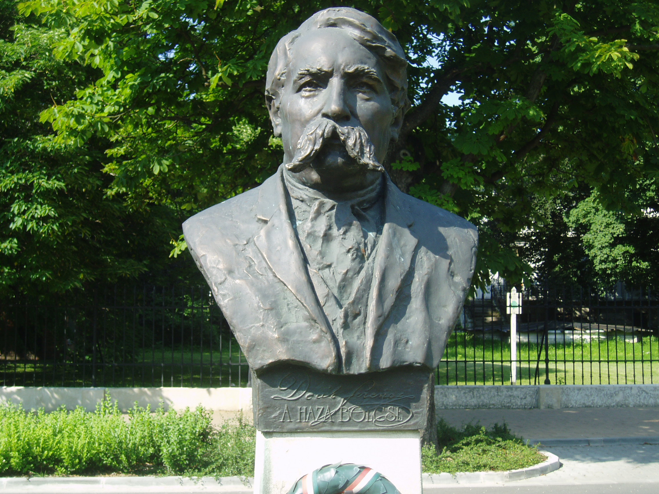 Nyilvános 923 | 2148 | Sopron, Deák tér | Sopron leghosszabb terét az itt folyó Rák patak beboltozásával alakították ki s reprezentatív kialakítású, historizáló stílusú épületek veszik körül. A téren első és második világháborús emlékművek mellett a névadóra, Deák Ferencre is szobor emlékeztet. Kutas Ferenc alkotását 2003-ban avatták fel. A fénykép 2008 júniusában készült. |