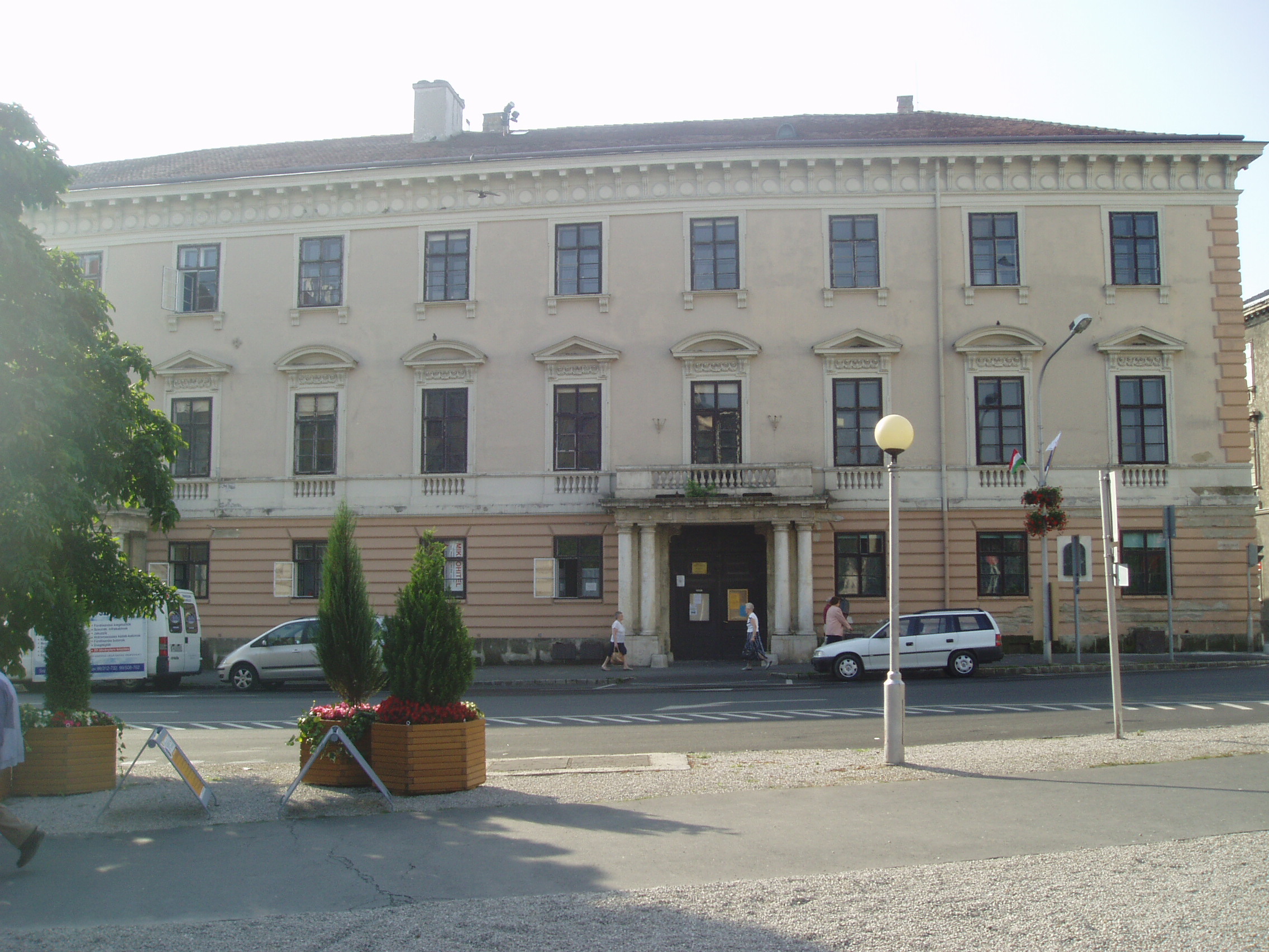 Nyilvános 800 | 1170 | Sopron, Széchenyi tér 1-2. Széchenyi-palota | A Széchenyi család palotája 1827-ben Hild Vencel tervei alapján épület három barokk ház helyén, amelyek 1765 után kerültek a család birtokába. E régi épületek egyikében őrizte Széchenyi Ferenc annak a gyűjteményének egy részét, amelyet 1802-ben, alapításakor, felajánlott a nemzet múzeumának. A ma itt álló palota végső formáját Széchenyi Pál megbízásából Koch Henrik építőmester alakította ki. A homlokzatán 1933-ban elhelyezett, Haich Erzsébet által készített portrédomborműves emléktábla arról tájékoztat, hogy itt töltötte gyermekéveit a legnagyobb magyar, Széchenyi István. A kép 2008 júniusában készült. Felh. irod.: Czellár Katalin: Sopron. 3. jav. kiad. Bp. Panoráma, 2000 |