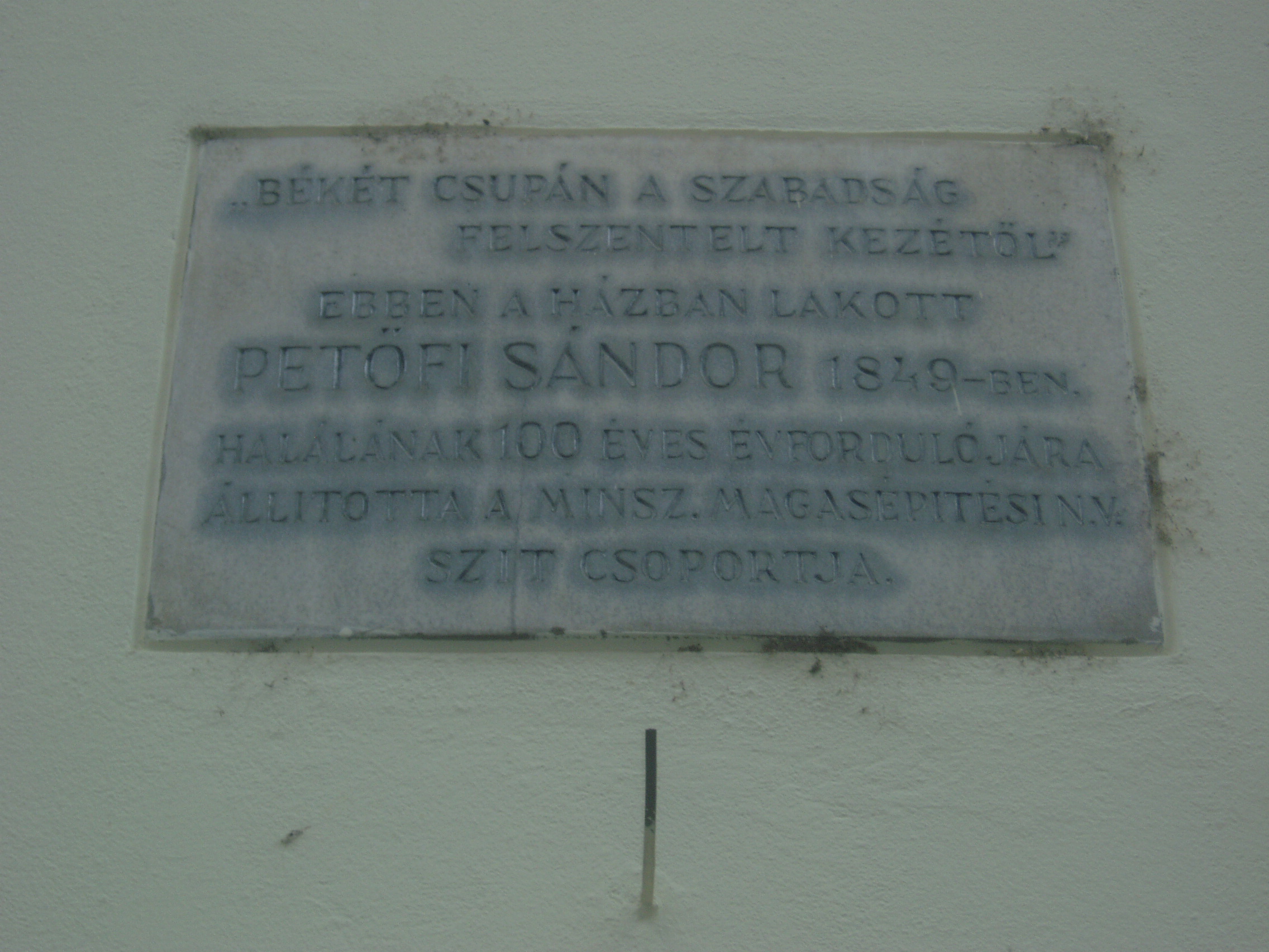 Nyilvános 1310 | 3276 | Rövid leírás | Teljes leírás (1.48 KB) | Debrecen, Batthyány utca 16. Ebben a házban lakott Petőfi Sándor gyermeküket váró fiatal feleségével 1848/49 telén, Ormós Gábor szabómesteréknél. Itt született meg 1848. december 15-én fia, Zoltán. A nagy eseményről a költő így számolt be: "Született Zoltán fiam december 15-én 1848. déli tizenkét órakor, Debrecenben, a Harmincad utcában, az utcára nyíló kapu melletti szobában... Azaz jobban mondva: pénteki napon és ami több, Debrecenben!" Visszagondolva 1843/44 telére, amit rendkívül nyomorúságos körülmények között töltött Debrecenben, nem csoda, hogy a város nem a legjobb emlékeket hagyta a költőben. A szobában, amely az utcára nyíló kapu mellett található, ma utazási iroda van... Petőfi harcra buzdító, nagyhatású költemények egész sorát írta ebben a házban: Akasszátok fel a királyokat, Itt a nyilam, mibe lőjem, Az egész világ a harcmezőn, Európa csendes, újra csendes... és más költeményeit. Innen indult a harctérre, Bem tábornokhoz, hogy aztán már csak egy-egy napra, futó látogatásra térjen vissza családja körébe A ház homlokzatán több emléktábla is idézi az történteket. A fénykép 2006 júniusában készült. Felh. irod.: Kovács Gergelyné: Debrecen. Bp. Panoráma, 1981 Papp Antal: Debrecen. Bp. Panoráma, 1976 Petőfi emlékhelyek a Kárpát-medencében. Kiskőrös, 1996 |
