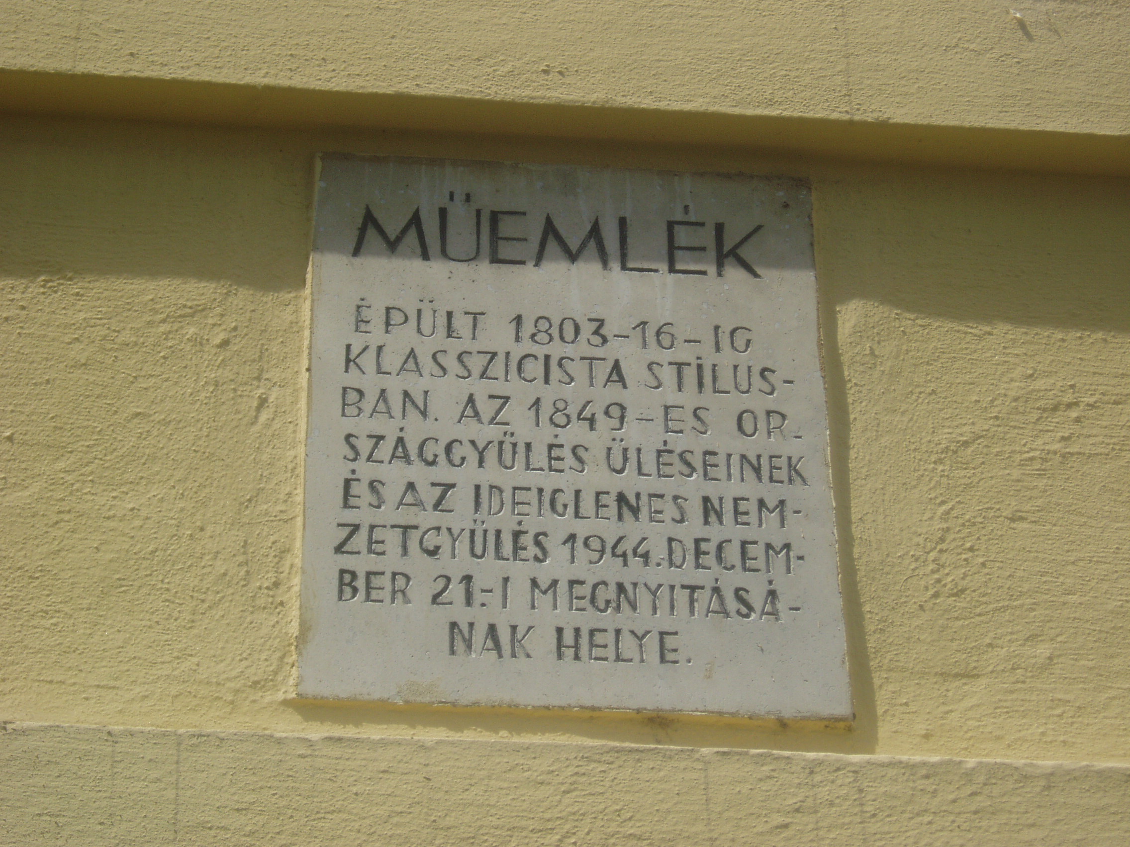 Nyilvános 924 | 1415 | Debrecen, Széchenyi utca 1. | A Podmaniczky-ház Debrecen patinás épülete, a Piac utca és a Széchenyi utca sarkán áll. Nevét gróf Dégenfeld József, Hajdú vármegye és Debrecen főispánja feleségéről, Podmaniczky Annáról kapta. 1820-ban épült klasszicista stílusban. 1849-ben a szabadságharcos magyar kormány debreceni tartózkodásának idején e ház emeleti dísztermében tartotta üléseit az országgyűlés főrendi háza, amint arról az épületen emléktábla is tanúskodik. Az épületen elhelyezték az utcanévadó Széchenyi István emléktábláját is, aki többször is járt Debrecenben. Fiatal huszártisztként Simonyi óbester ezredében szolgált, 1840-ben pedig a Tisza szabályozásának ügyében tartózkodott a városban. Felh. irod.: Papp Antal: Debrecen. Bp. Panoráma, 1976 Kovács Gergelyné: Debrecen. Bp. Panoráma, 1981 www.debrecen.hu |