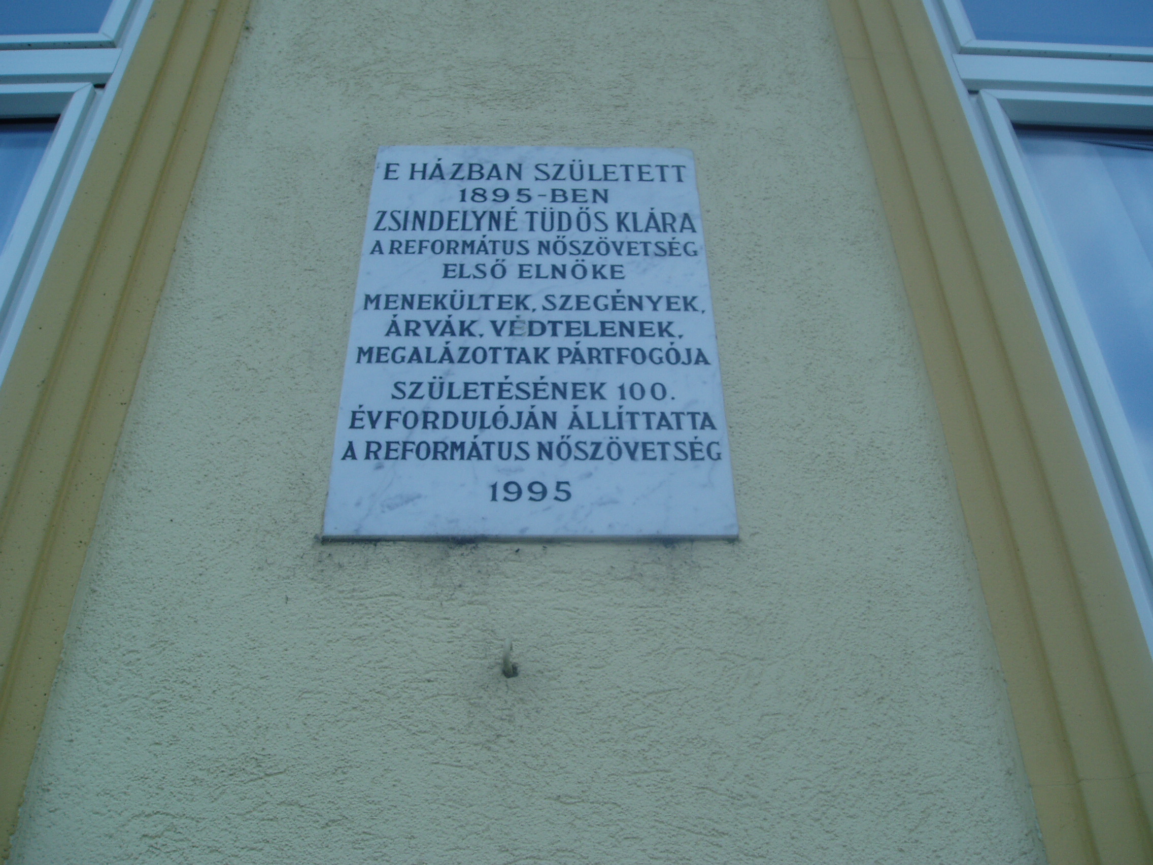 Nyilvános 909 | 1499 | Debrecen, Péterfia utca 30. | Ebben a házban született Zsindelyné Tüdős Klára (Debrecen, 1895. július 20. – Bp., 1980. április 16.): jelmeztervező, népművészeti kutató. Iparművészeti és néprajzi tanulmányok után 1925-ben került az Operaházhoz, a jelmezműhely vezetője és jelmeztervezője volt. Ő tervezte Kodály Zoltán Háry Jánosa 1926-os ősbemutatójának jelmezeit. Az 1930-as években a Belvárosban divatszalont nyitott, ahol tervezésében divatba hozta a paraszthímzéssel, szőttesekkel díszített ruhákat. 1944-ben az Országos Református Nőszövetség elnöke lett. Megalapította a szövetség lapját, a Magyar Asszonyt. A II. világháború idején a svéd misszióval együtt számos üldözöttnek adott menedéket. 1952-ben férjével együtt kitelepítették. 1963-ig éltek Balatonlellén egy nyaraló házmestereként. A fénykép 2006 júniusában készült. Felh. irod.: Magyar életrajzi lexikon |
