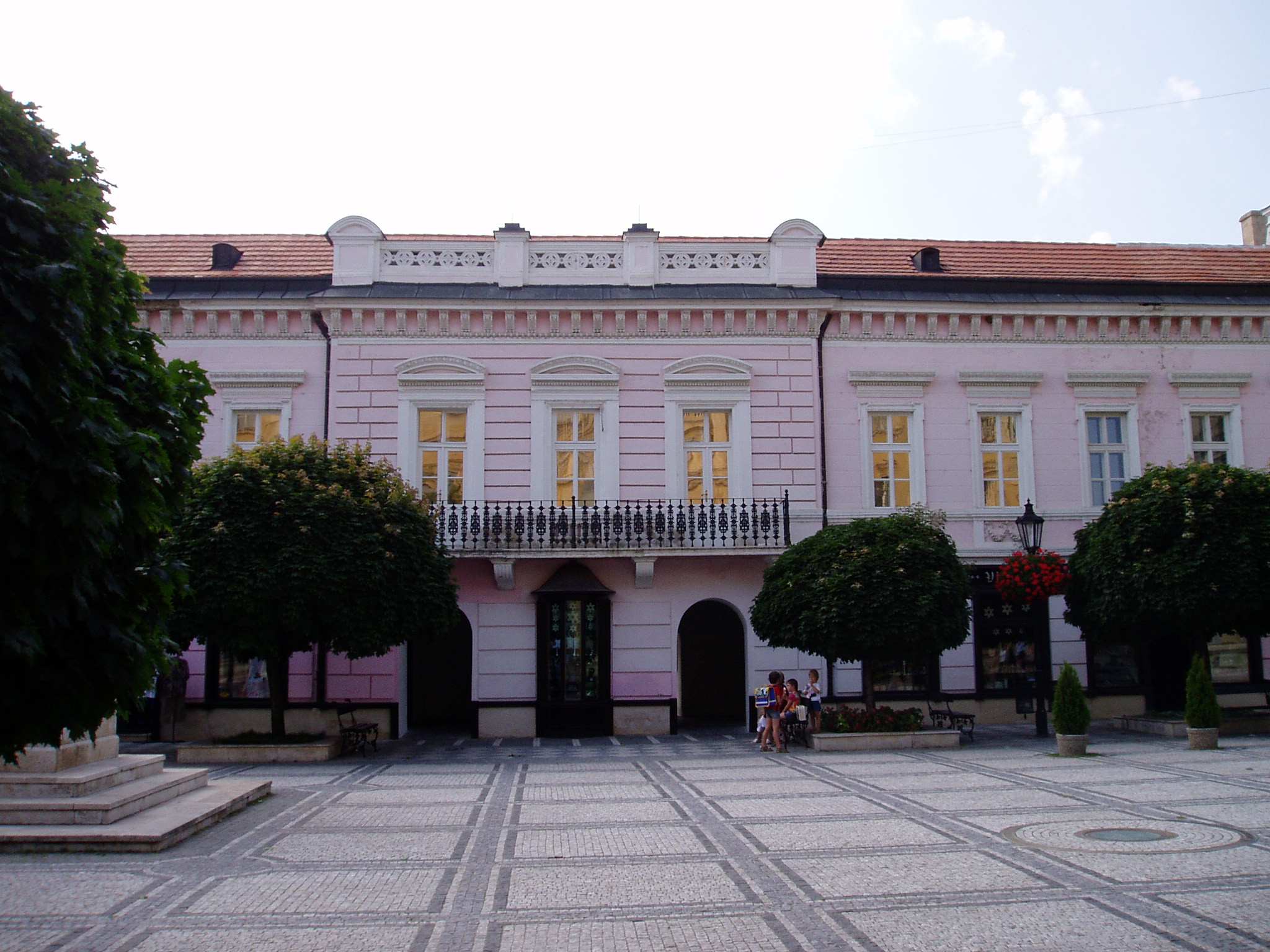Nyilvános 977 | 5046 | Komárom (Komárno). Klapka tér 9. Zichy-palota | A Klapka tér legnagyobb épülete a volt Zichy–palota. Zichy Miklós gróf, szabolcsi főispán építtette a XVII. század második felében. Eredetileg barokk stílusú volt, de miután a 1763-as nagy komáromi földrengés romba döntötte, klasszicista stílusban épült újjá, két épületszárnnyal bővülve. Udvarának végén az 1800-as évek elejétől 1827-ig emeletes épület állt, ennek emeleti részén tartották a táncmulatságokat és a színházi előadásokat. Az első hivatásos magyar színtársulat Komáromban Benke József és Kemény János vezetésével lépett fel 1811 májusában (ők a második pesti színtársulatból váltak ki). A társulatban ott volt Balogh István, Déry István, Láng Ádám, Murányi Zsigmond, Murányiné Lefèvre Teréz és a pályája legelején levő, tizennyolc éves Scheckenbach (Schenbach) Róza, aki később Déryné Széppataki Róza néven vált a magyar játékszín történetének állócsillagává. Legközelebb Balogh István székesfehérvári társulata jutott el Komáromba, valamikor 1813 és 1815 között. Szinnyei József szerint ennek a társulatnak Katona József is tagja volt, s Idegen művésznéven fellépett itt a Hamlet címszerepében és saját, Luca széke című darabjában. 1819 októberében Kilényi Dávid kecskeméti társulata érkezett a városba. Előadásaikról Ásvay Jókay József, Jókai Mór édesapja tudósított a helyi sajtóban. A közelmúltban a Zichy–palota udvarán építették ki az ún. Európa udvart. A helyi viszonylatban gigantikus méretű vállalkozás célja, hogy élőben mutassa be harmincöt európai ország építészetét. A városrész egyben Komárom új szolgáltató központja is, üzletekkel, éttermekkel, kávézókkal, valamint egy föld alatti bevásárlóközponttal. A palota első emeletén (bejárat a Szentháromság–szobor melletti kapun) a város két híres szülötte, Jókai Mór és Lehár Ferenc emlékkiállítása látható. Különösen a Jókai-kiállítás gazdag eredeti relikviákban. A fénykép 2005. júliusában készült. Felh.irod.: www.komarno.sk Mácza Mihály: Komárom nevezetességei. Pozsony, Madách-Posonium, 2002 Szénássy Zoltán: Rév–Komárom. KT Kiadó, 1998 Tóth László: "...miként hajdan az apostolok" : a komáromi magyar színjátszás története. Dunaszerdahely, Lilium Aurum, 1997 |