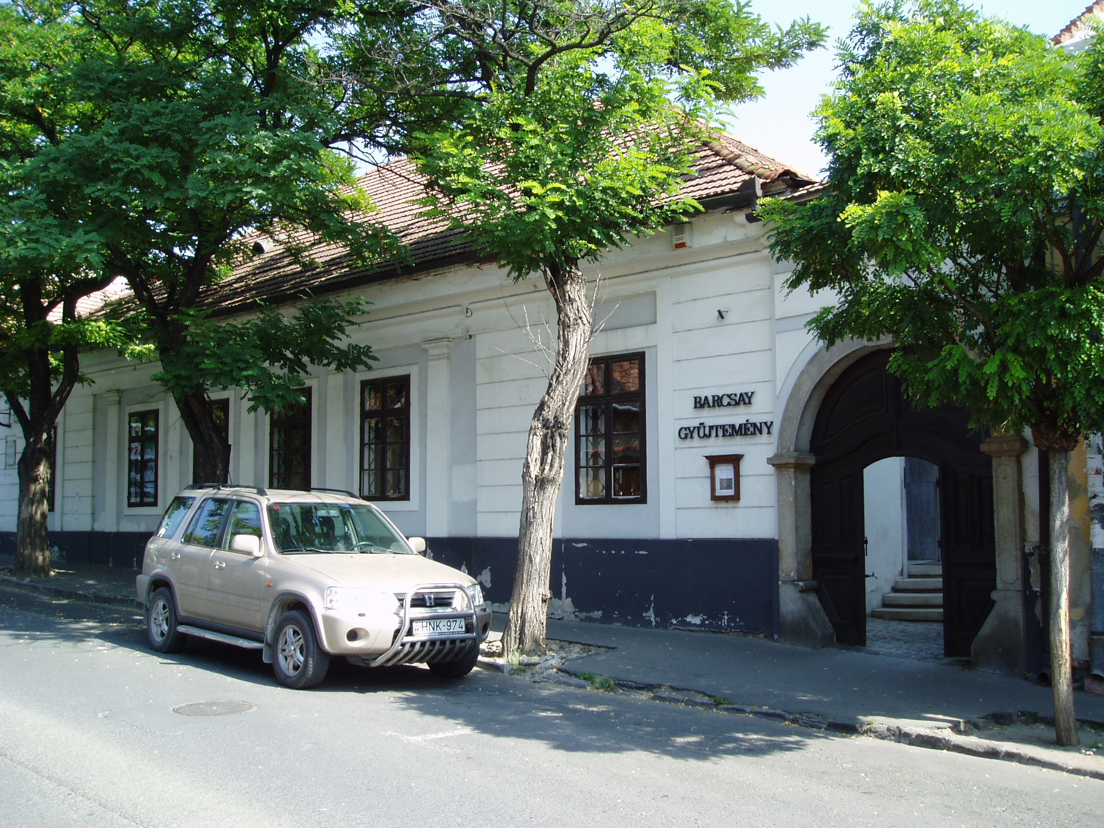 Nyilvános 914 | 1683 | Szentendre, Dumtsa Jenő utca 10. | A XIX. zázadban épült polgárház 1978 óta a Barcsay Múzeum otthona. Barcsay Jenő (1900-) 1929-ben jött először Szentendrére, s azóta az év egy részét itt töltötte. Ezt írta a város szerepéről életében és művészetében: "Szentendrén éltem és Szentendrén alakítottam ki festészetemet, azt a valamit, amiért nekem érdemes volt küzdenem és élnem. A Szentendrén látott dolgokban, a természetben látott jelenségekben élet van, művészet van. Élnek azok a formák, színek, vonalak, amelyeket csak festő vehet észre..." A ház másik nevezetessége, hogy 1824. december 3-án itt született Stéger Ferenc (1824-1911) operaénekes. A patikusnak tanult fiatalember Európa–szerte híres hőstenorrá vált: rendszeresen vendégszerepelt Prágában, Bécsben, de énekelt Barcelonában, Bukarestben és Itália több színházában. 1848–1852 és 1873–1874-ben a pesti Nemzeti Színház tagja volt, Erkel színpadi hőseinek, valamint a francia és olasz tenorszerepeknek utolérhetetlen megszólaltatója. Élete alkonyán szülővárosába vonult vissza, itt hunyt el; a Katolikus Kálvária kertjében nyugszik. A fénykép 2005 szeptemberében készült. Felh. irod.: Szentendre. Szerk. Sándyné Wolf Katalin. Bp. Panoráma, 1985 Pethő Németh Erika- G. Sin Edit: Írók, költők Szentendrén. Szentendre, 1990 Erkel Ferencz emlékkönyv. Szerk. Fabó Bertalan. Bp. Pátria, 1910 |