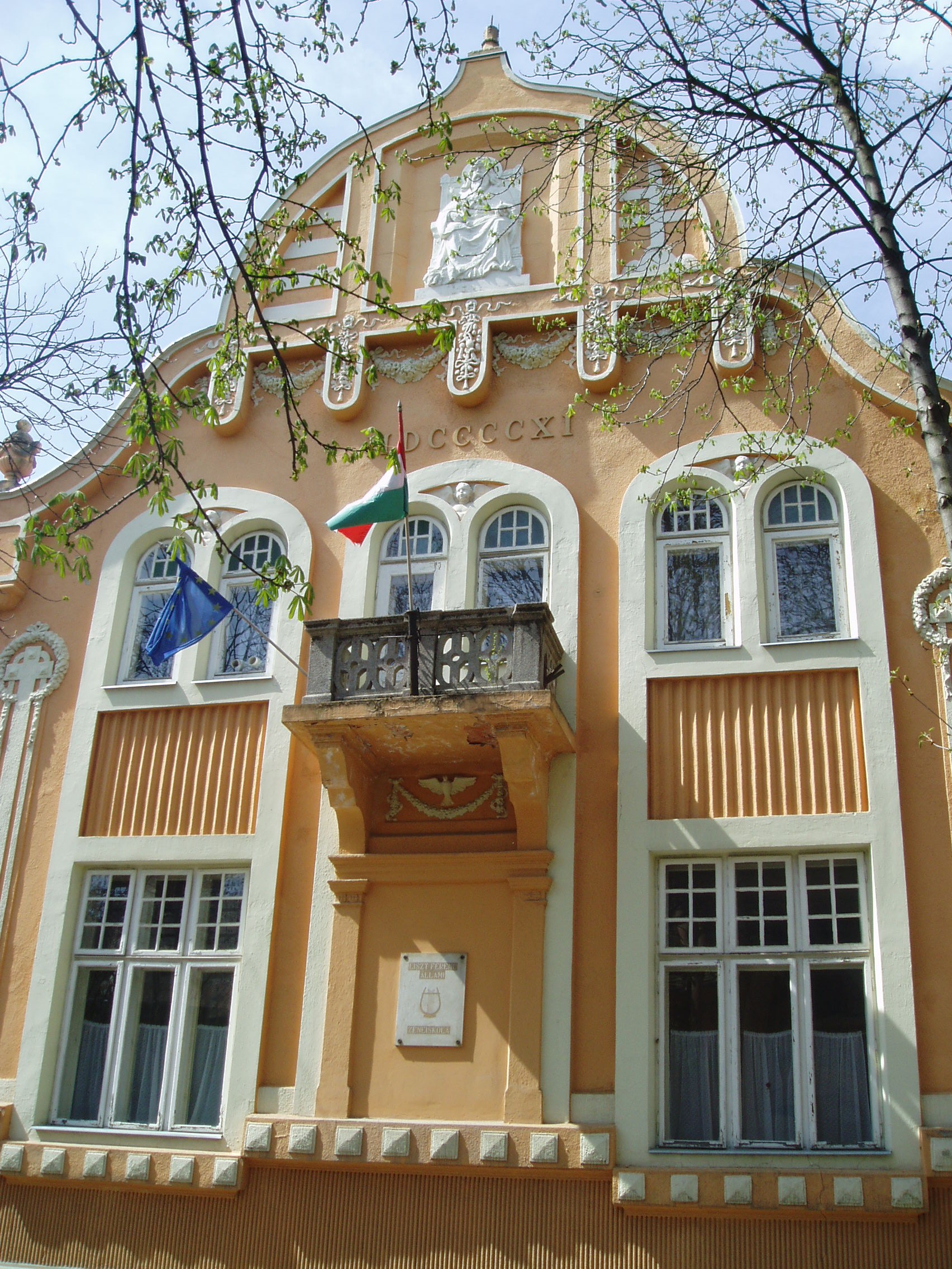 Nyilvános 892 | 1549 | Kaposvár, Kossuth utca 21. | A Katolikus Kör épületét 1911-ben emelték szecessziós stílusban. Oromfalán Szent István szép szobra látható. Az épület 1955 óta a Liszt Ferenc Zeneiskola otthona. Az intézmény elődét 1907-ben a Kaposvári Zenekedvelők Egyesülete alapította. Első vezetője és tanára a kitűnő Gyenes Izsó hegedűművész volt. A zeneiskola híres növendékei voltak Lorenz Kornélia operaénekesnő (1930-35 között), Gyulai Gál János zeneszerző (1938-43 között), Lendvay Ernő zeneesztéta, Bartók–kutató (1935-36 között), Olsvay Imre zenetudós (1939-43 között), Antalffy Zsíros Albert operaénekes (1945-46 között). A fénykép 2006 márciusában készült. Felh. irod.: Kaposvár és környéke. Kaposvár, Infomark, 2002 Csupor László: Barangolás Kaposvár zenei múltjában. Kaposvár, Liszt Ferenc Zeneiskola, 1992 |