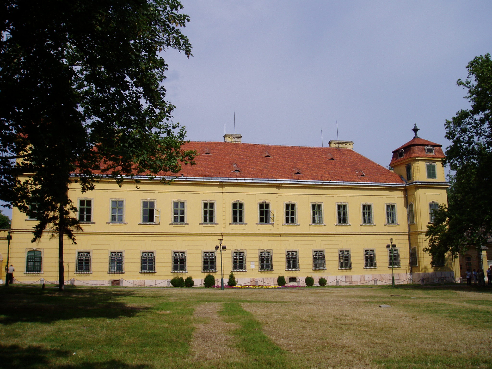 Nyilvános 1216 | 2932 | Rövid leírás | Teljes leírás (1.42 KB) | Tata, Kastély tér: Esterházy-kastély Az Esterházy–kastély műemléki együttese az Öreg–tó partján, a középkori vár közvetlen szomszédságában áll. Fellner Jakab tervei szerint a XVIII. század második felében épült az Esterházy–család fraknói ága számára, későbarokk stílusban, a kiváló építész egyik legjelentősebb műveként. Fellner a hazai késő barokk, illetve korai klasszicizmus egyik legjelentősebb építésze, munkássága a mai napig meghatározza Tata városképét. Az épület több alkalommal is jelentős szerepet játszott a történelemben. 1809-ben I. Ferenc osztrák császár és felesége, Ludovika ide menekültek Napóleon hadai elől. Hosszú hetekig itt laktak, s az uralkodó itt, az északi szárny toronyszobájában írta alá az ún. Schönbrunni békét. 1897-ben Ferenc József és II. Vilmos német császár látogattak ide egy tatai hadgyakorlat alkalmából. 1921-ben az utolsó magyar király, IV. Károly menekült ide feleségével a balul végződött budaörsi csata után, s itt vették őket őrizetbe. A fénykép 2005. júliusában készült. Felh. irod.: Polgárdy Géza: Tatatóváros és környéke kalauza. Az 1939-es kiadás reprintje. Tata, Móricz Zsigmond Városi Könyvtár, 1998 Magyar kastélylexikon 4. Komárom-Esztergom megye kastélyai és kúriái. Bp. Perfect Project, 2003 |