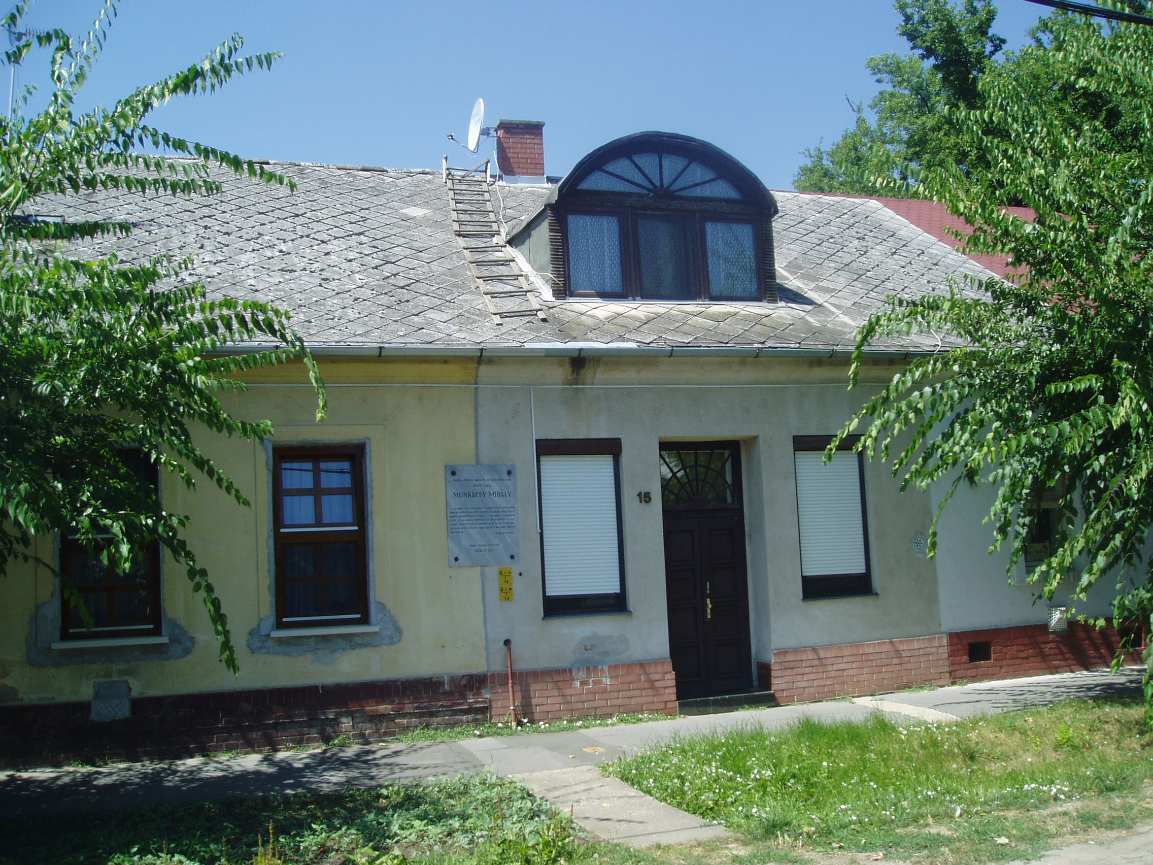 Nyilvános 852 | 1481 | Gyula, Munkácsy utca 15. | Ebben a földszintes házban - Oláh György asztalosmester egykori házában - lakott 1860-61-ben Reök István, Munkácsy Mihály nagybátyja és gyámja. A Bach-rendszer bukása után ugyanis mint régi negyvennyolcas a megyénél kapott állást, s Gyulára költözött (korábban Békéscsabán élt). Az Aradon asztaloslegényként dolgozó gyámfia, akkor még Lieb Mihály 1860 őszén őhozzá jött haza Gyulára. A sokáig váltólázban szenvedő fiút nagybátyja Karl Fischer helybeli rajztanár műtermében taníttatta, hogy az asztalosmesterséghez szükséges rajztudást elsajátítsa. S itt, Fischer mesternél látta meg őt a Wenckheim kastélyban (lásd: Gyula, Kossuth u. 15.) tartózkodó Szamossy Elek festőművész, aki felismerte Munkácsy tehetségét, magához vette, s Gyuláról távozván, a nagybácsi engedélyével magával is vitte. Így mentette meg a tehetséges fiút a magyar művészet számára. Munkácsy maga is azt vallja önéletírásában, hogy élete sorsa Gyulán dőlt el. A ház falán márványtábla őrzi Munkácsy emlékét, s ezen idézetet olvashatunk Munkácsy "Emlékeimből" című önéletrajzából. A fénykép 2007 júliusában készült. Felh. irod.: Czeglédi Imre: Gyula útikalauz. 2. jav., bőv. kiad. Gyula, 1995 |