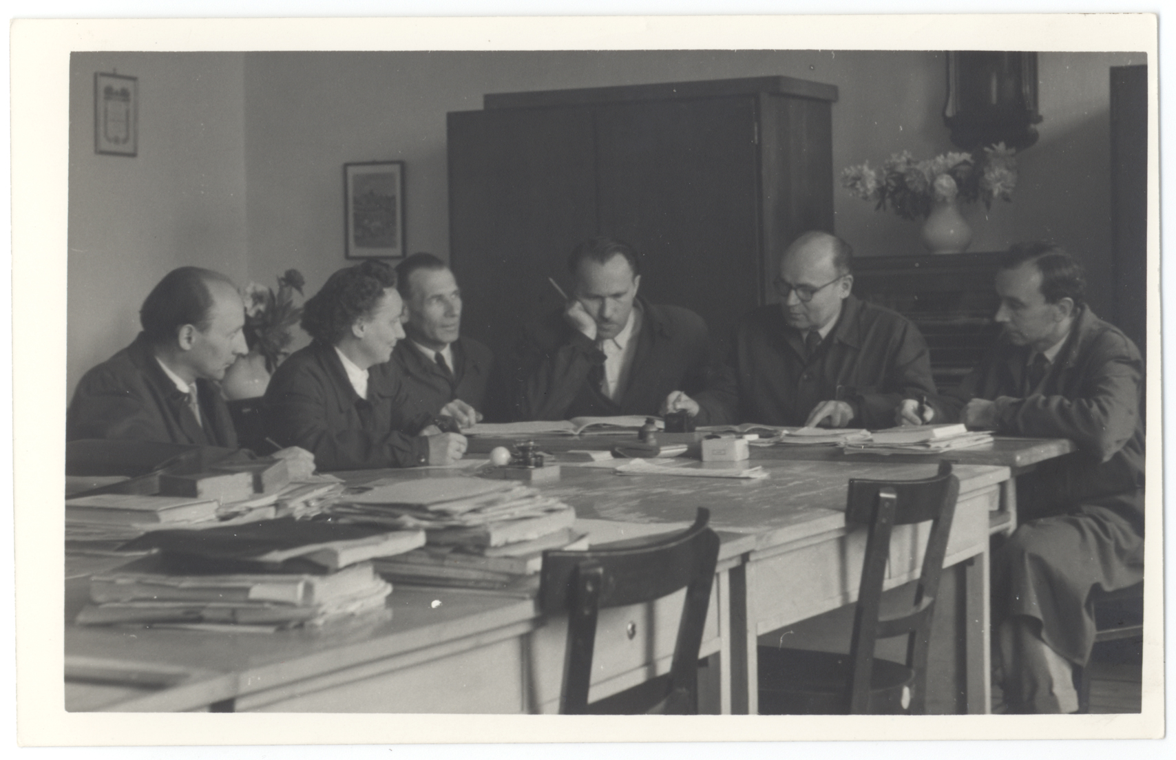 Nyilvános 1187 | 2637 | Az 1950-ben megnyílt Nagykanizsai Gépipari Technikum első tantestülete (balról jobbra): Borsfay Géza, Halmai Lujza, Farsang Ferenc, Vértes Imre, Breznay László igazgató, dr. Buvári András. Az iskola 1956-ban megszűnt | |