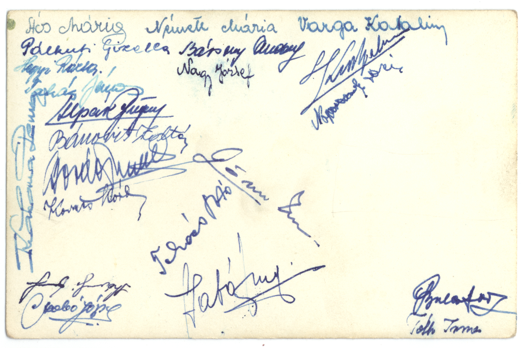 Osztálykép hátoldal aláírásokkal