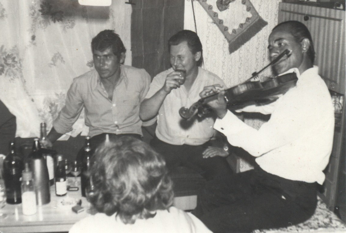 Horváht Lajos lakása. Balról az 1. Horváth Lajos. 2. nem ismert 3. Horváth István. A kép 1980-ban készült.