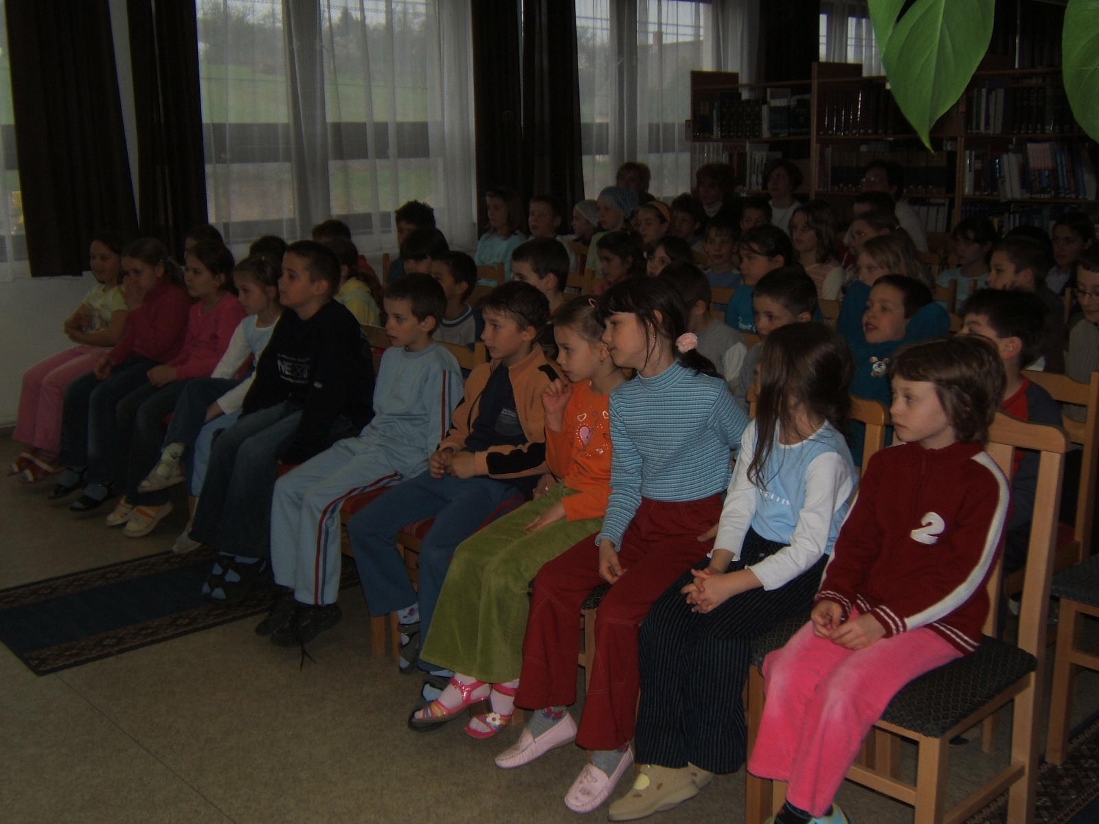 Nyilvános 1226 | 3098 | Költészet napja műsor a zalakarosi könyvtárban 2006. április 11-én. Vendégünk volt a Kardos Banda együttes, aki a kisiskolásoknak és a nagyoknak külön összeálított \"Költészet - minden formában régiektől, maiaktól\" című műsorát adta elő. | |
