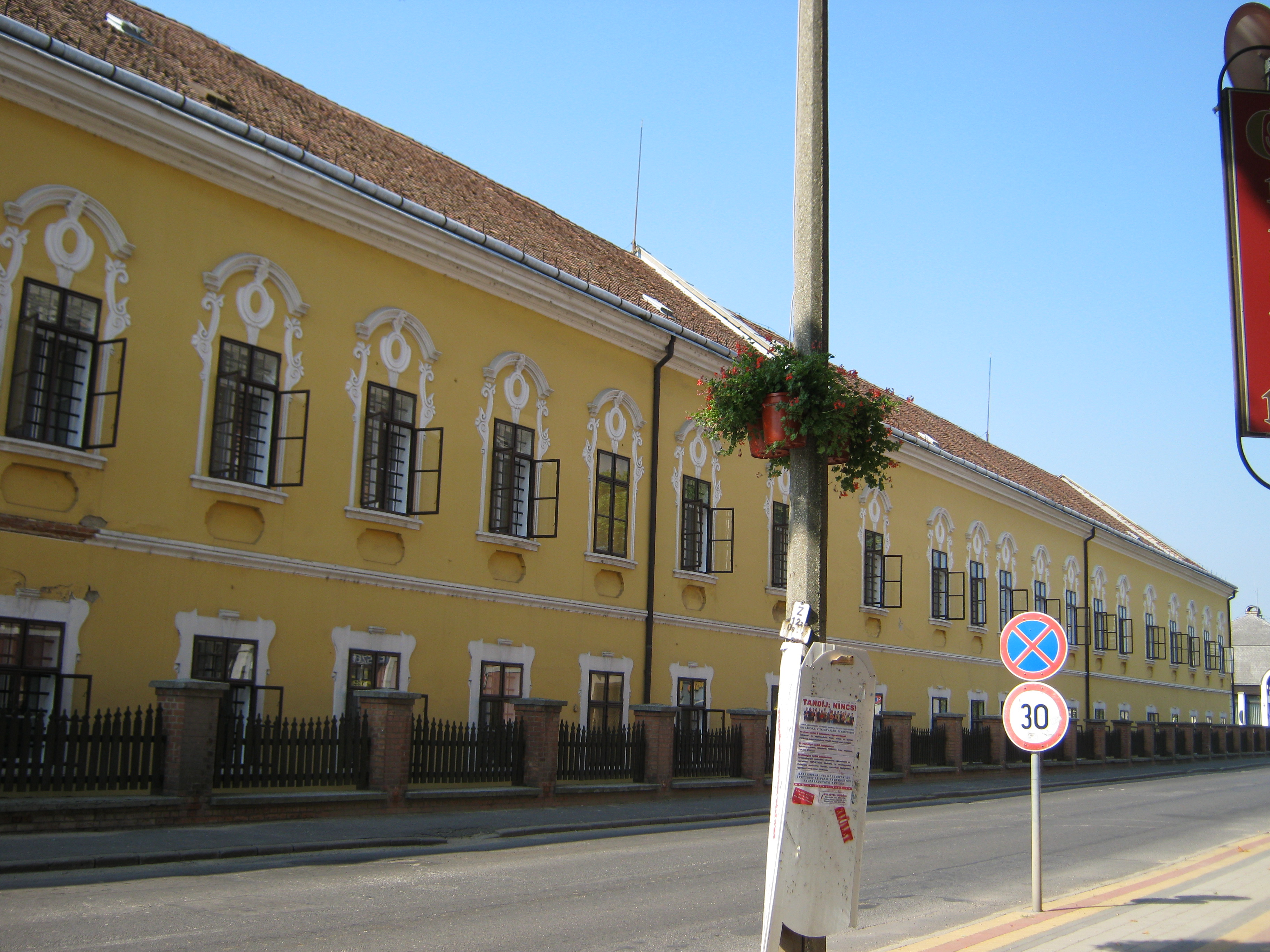 Nyilvános 847 | 1869 | Nagykálló, Szabadság tér 13. A régi vármegyeháza | Az egyemeletes, négyszögletes belső udvart körbezáró, copfstílusú középület 1769-80 között épült, olasz építészek, az Aprilis testvérek irányítása alatt. Dísztermében 1770 körül készült, szintén copf freskók láthatók. Salvatore Aprilis (aki a sátoraljaújhelyi vármegyeháza építését is vezette) kezdte az építést, majd halála után testvére, Giuseppe Aprilis folytatta azt. Az eredetileg U alakú épületet a XIX. század végén bővítették mai formájára, körülépítve az udvart. A megyeszékhely Nyíregyházára költözése után előbb kórház, majd ideg- és elmegyógyintézet, jelenleg a Szabolcs-Szatmár-Bereg Megyei Önkormányzat Pszichiátriai Szakkórháza működik benne. Felh. irod.: Harsányi Gézáné: Kálló kincsei. Nagykálló, 2007 www.nagykallo.net A fénykép 2010 augusztus elején készült. |