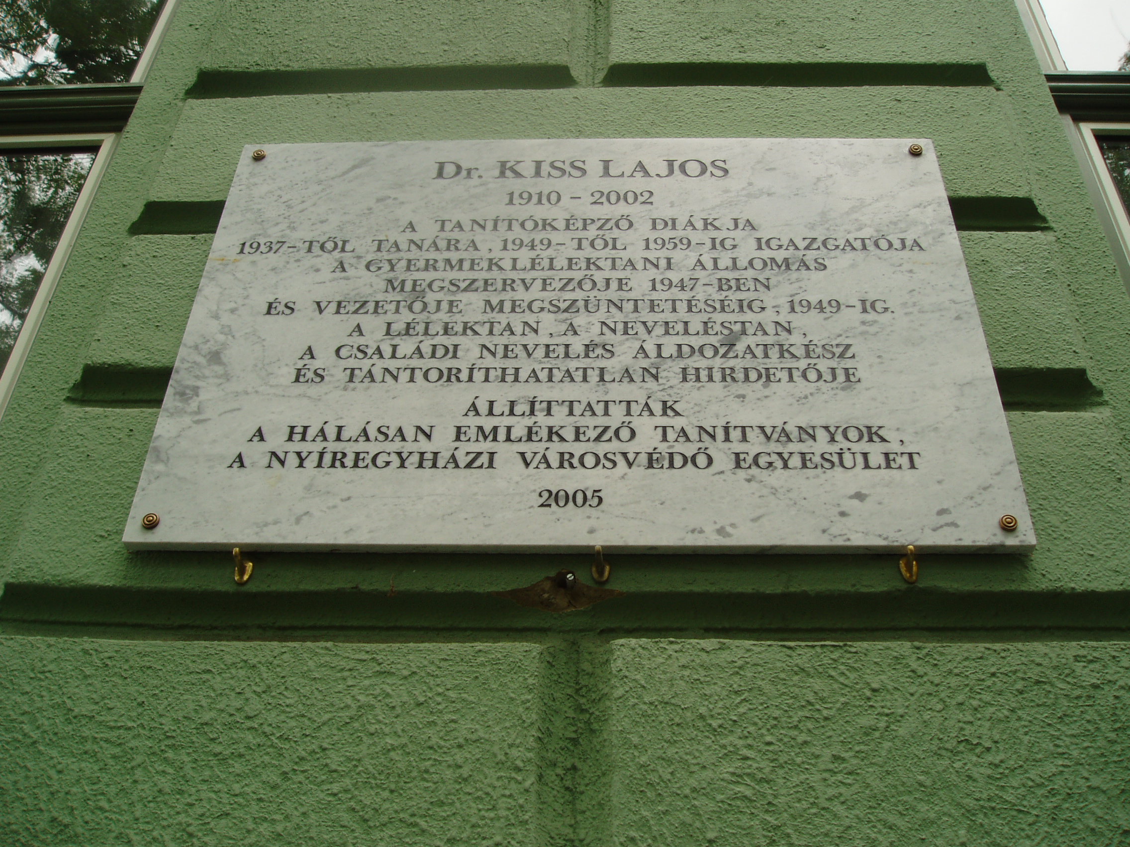 Nyilvános 793 | 1133 | Nyíregyháza, Széchenyi utca 6. Kölcsey Ferenc Gimnázium | Épületét 1901-ben, Barzó Mihály tervei alapján, pénzügyigazgatósági székháznak emelték. 1925-től, 1957-ben történt megszűnéséig középfokú tanítóképző intézetként működött. Azóta a Kölcsey gimnázium otthona. Az első gimnáziumi osztály 1954/55-ben még egy korábbi épületben kezdte meg a tanulást, de már itt érettségizett 1959-ben. Az iskolaépület homlokzatán több emléktábla idézi az egykori tanítóképző, majd gimnázium neves tanárainak és diákjainak alakját. Kiss Lajos (1910-2002) a tanítóképző diákja, majd tanára volt. Felh. irod.: www.kolcsey-nyh.sulinet.hu A fénykép 2010 augusztus elején készült |