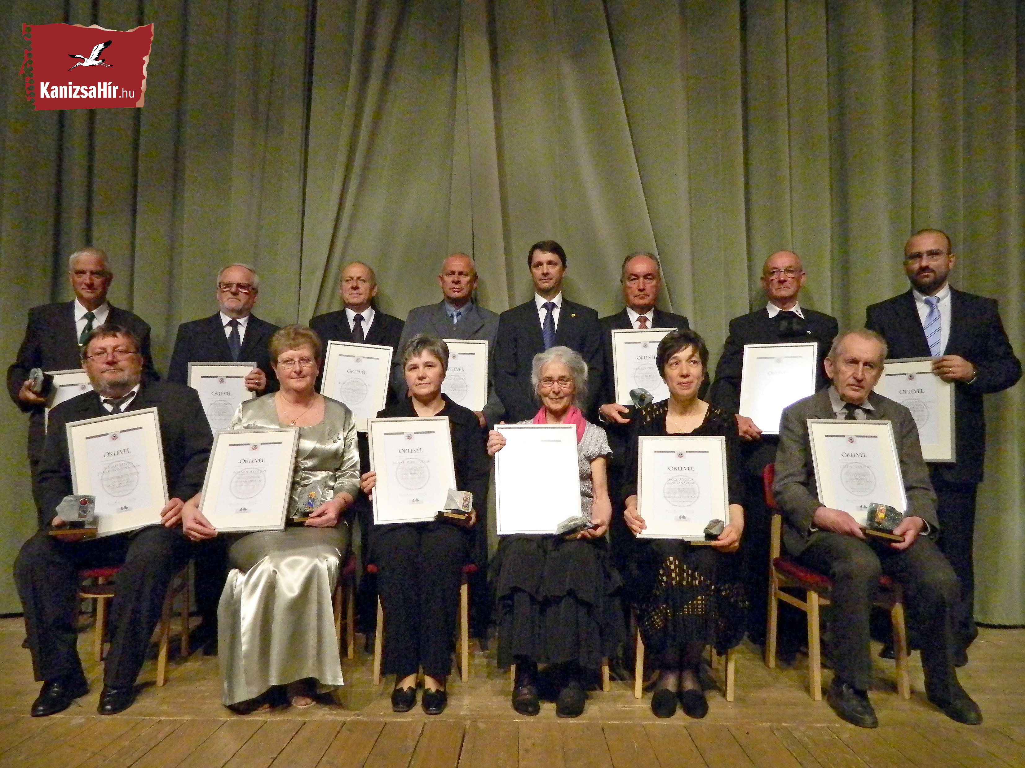 Nyilvános 1151 | 2720 | 2011. május 13-án, a Város Napján került sor a városi kitüntetések átadására (a képen a kitüntetettek csoportja látható), könyvtárunk a Nagykanizsa Megyei Jogú Város Kisebbségeiért kitüntető címet kapta. A képen az ülő sor bal oldalán az intézmény vezetője, Czupi Gyula. | |