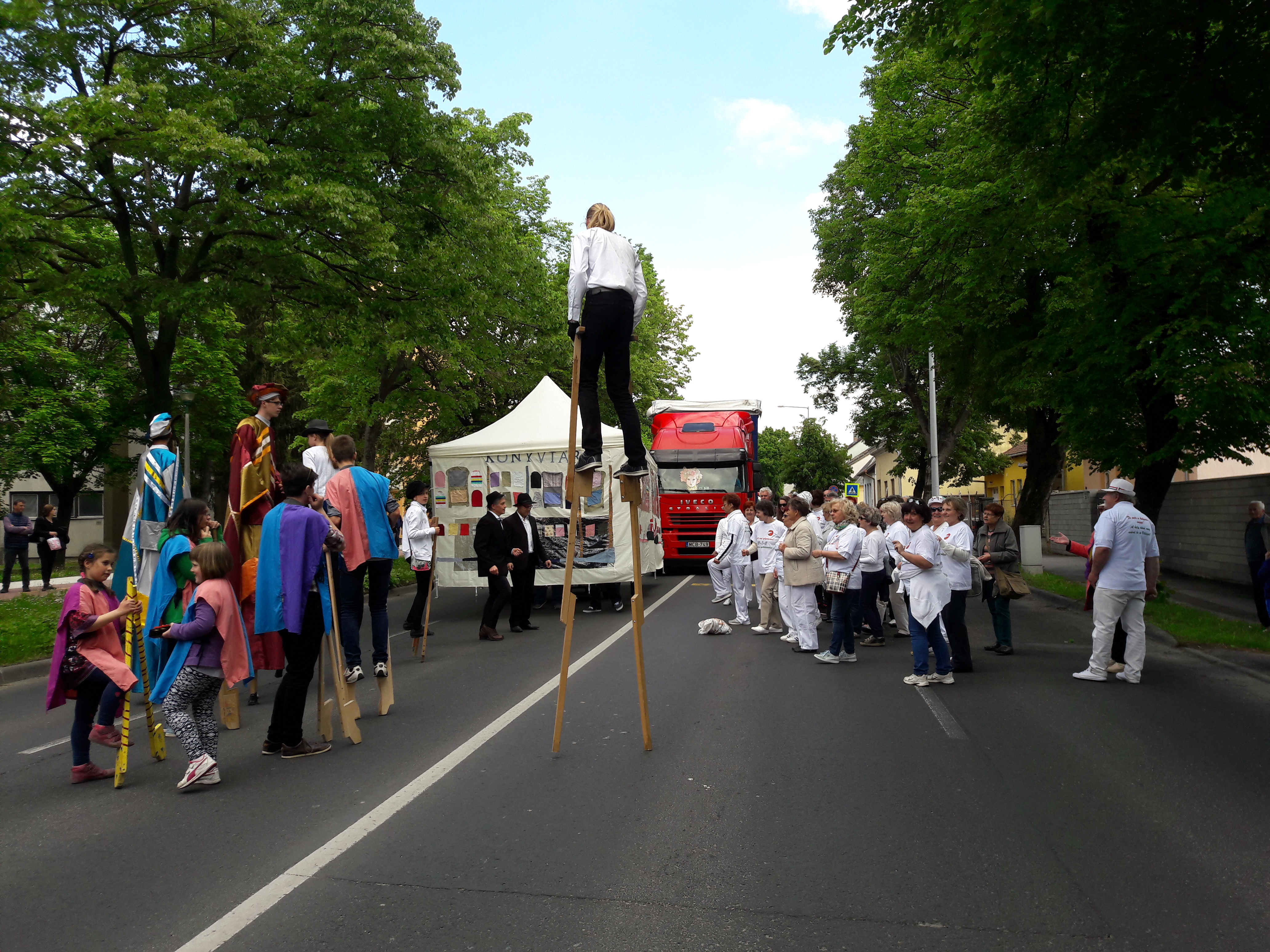 2017.04.30. Utca Tánc Fesztivál - Vonulás - Gólyalábasok, fekete kalapos táncosok, meridián tornások