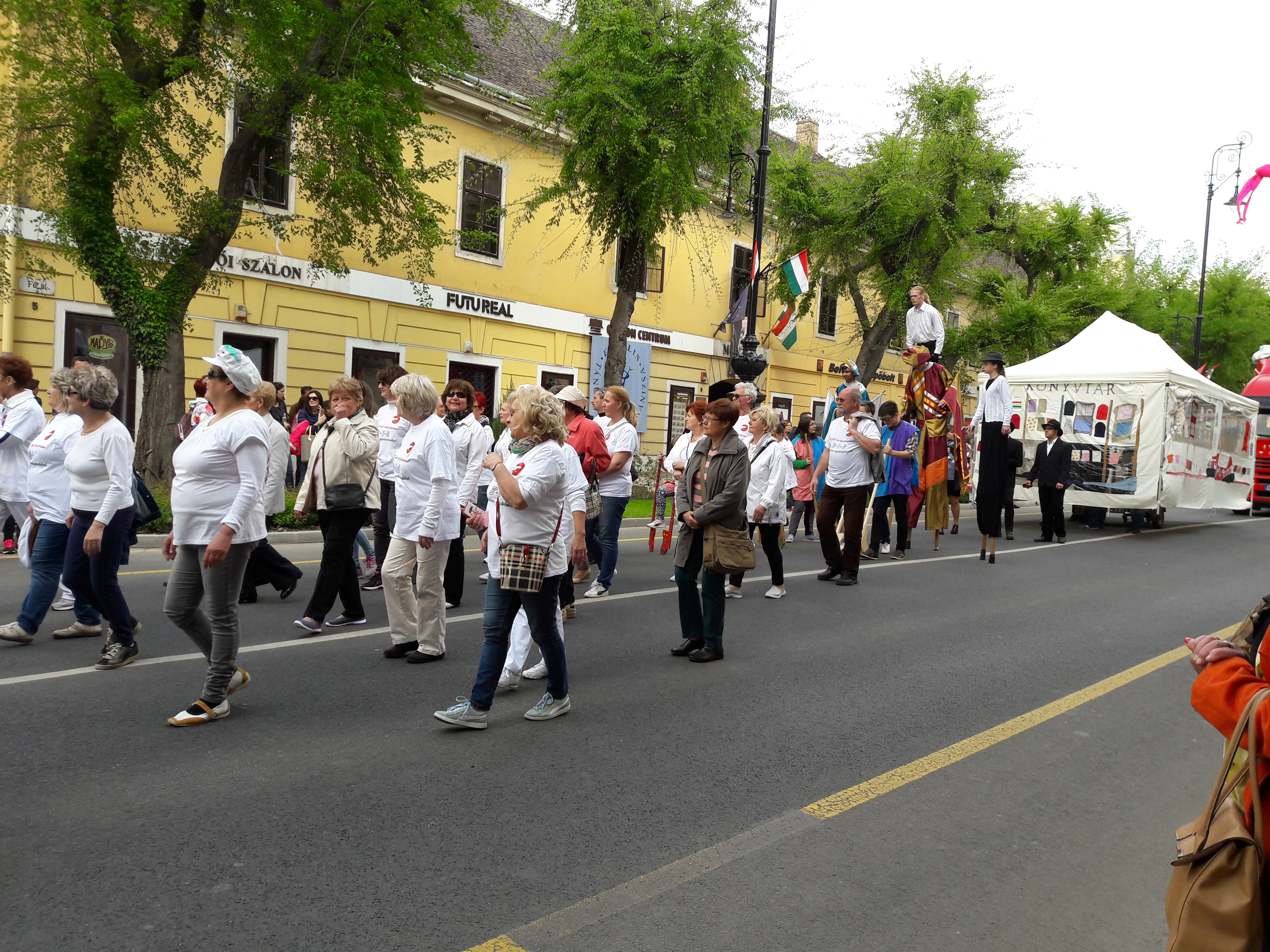 2017.04.30. Utca Tánc Fesztivál - Vonulás - Gólyalábasok, fekete kalapos táncosok, meridián tornások