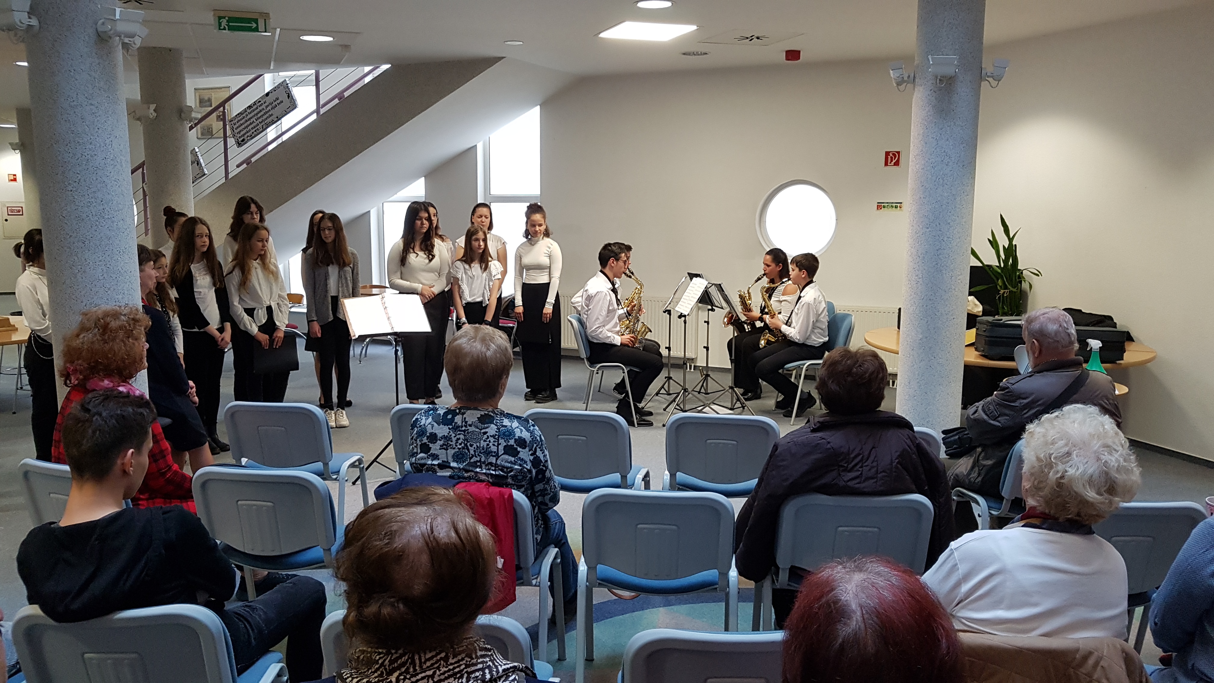 2022.04.22. Zene és egy csészényi könyvtár - zeneiskola kórusa és szaxofon kvartettje